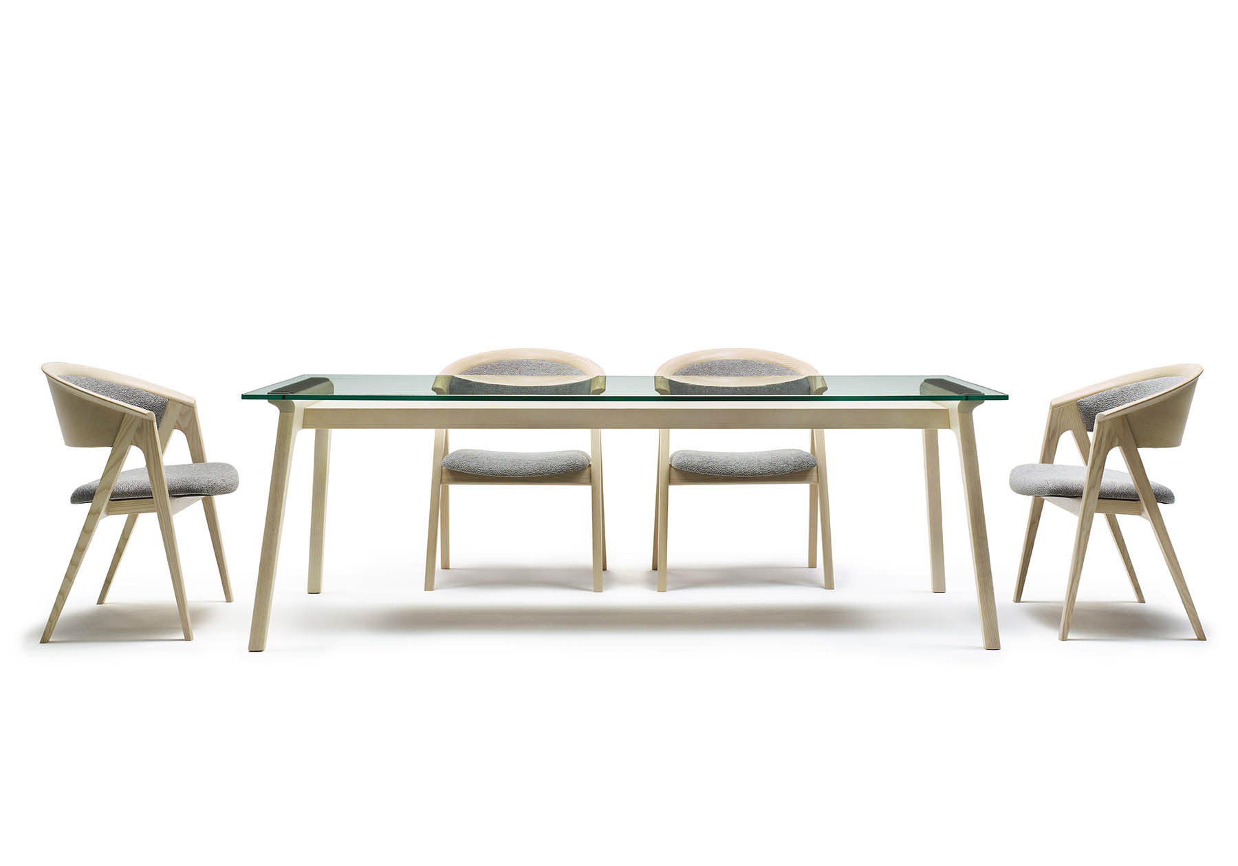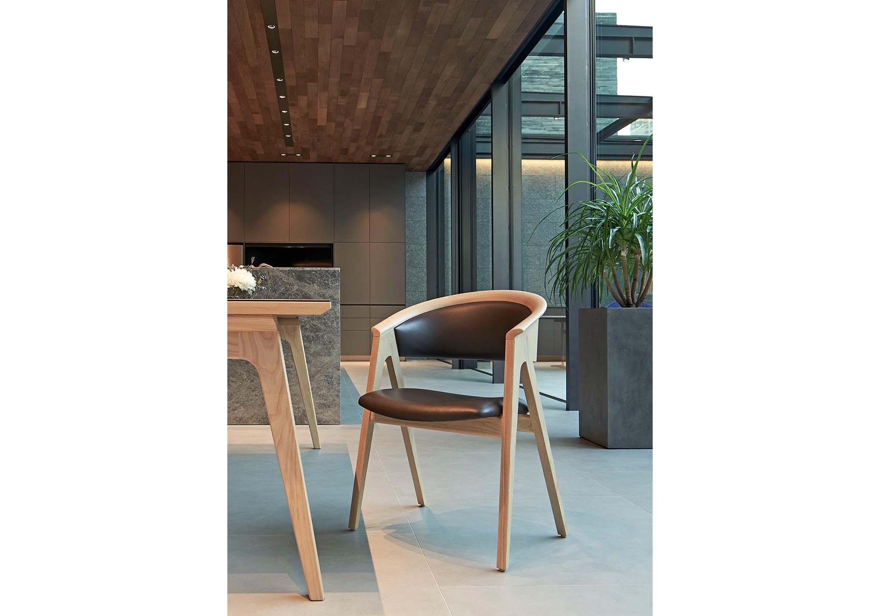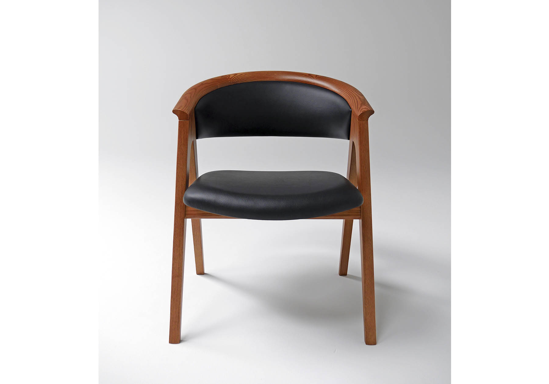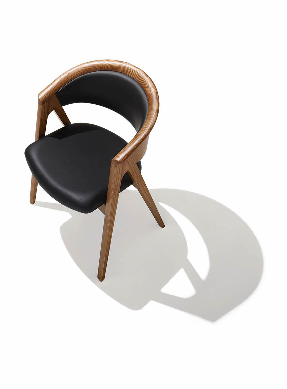 1950 年代のアメリカで花開いた北欧モダンデザインのヴィンテージ家具を意識したデザインです。自然の素材を使い無駄のないデザインと、クラフト感のある優しいフォルムを創りました。手が触れるアーム部は手触りの良い形状で、ホワイトアッシュ材の杢目を美しく出したアームが優しく背を包みます。ゆったりとしたダイニングシーンからミーティングチェアやオフィスチェアとして長時間快適にお使いいただけます。