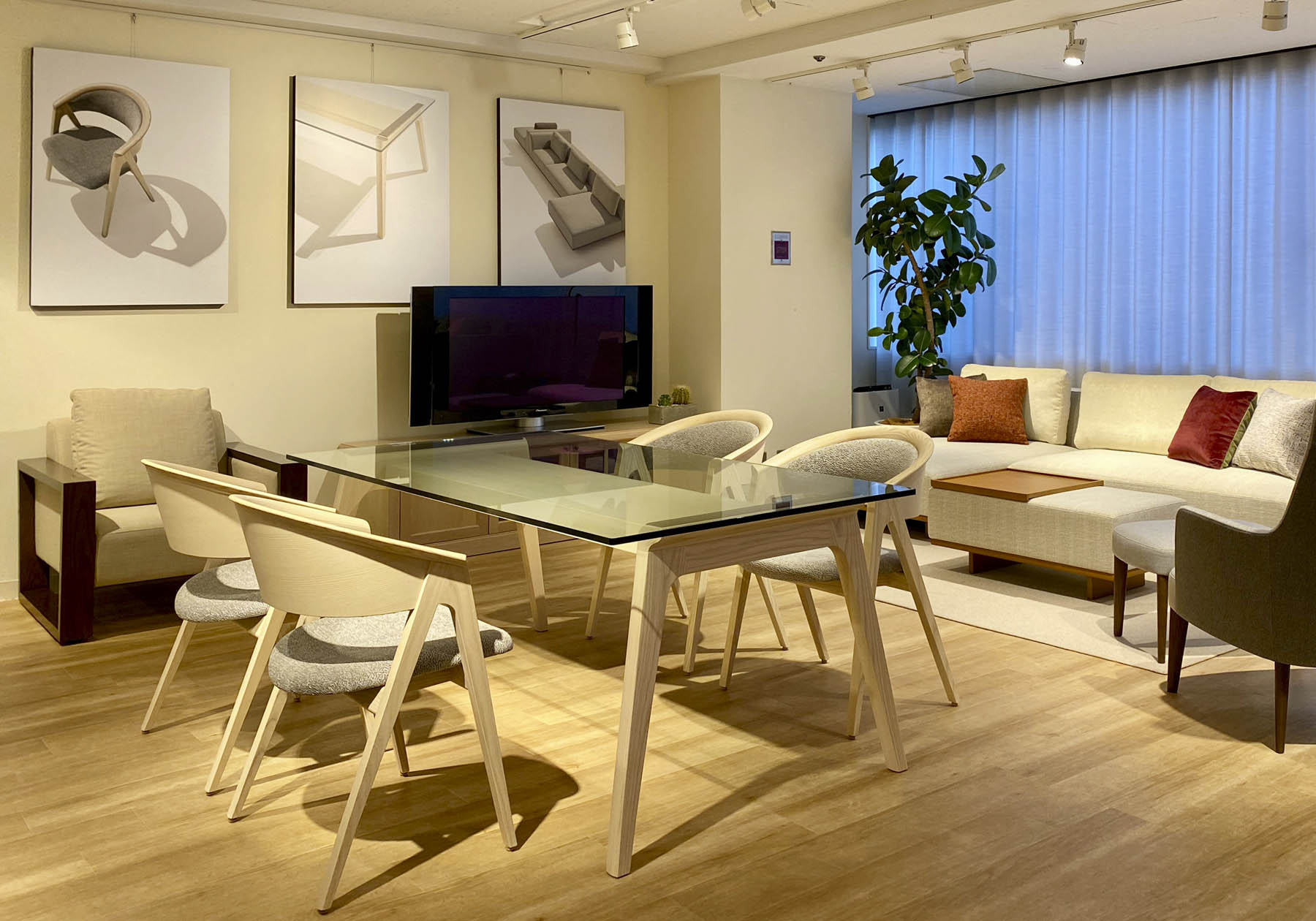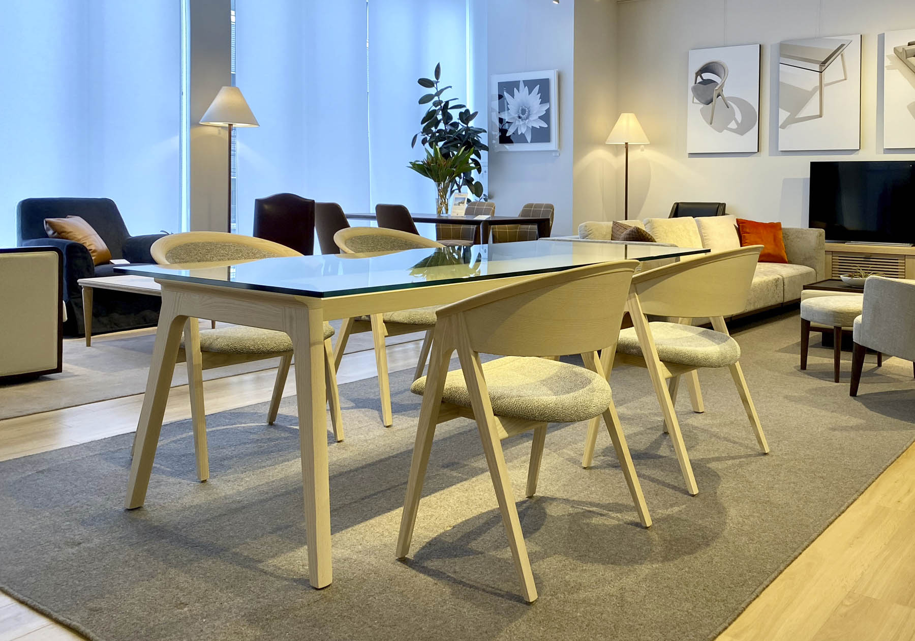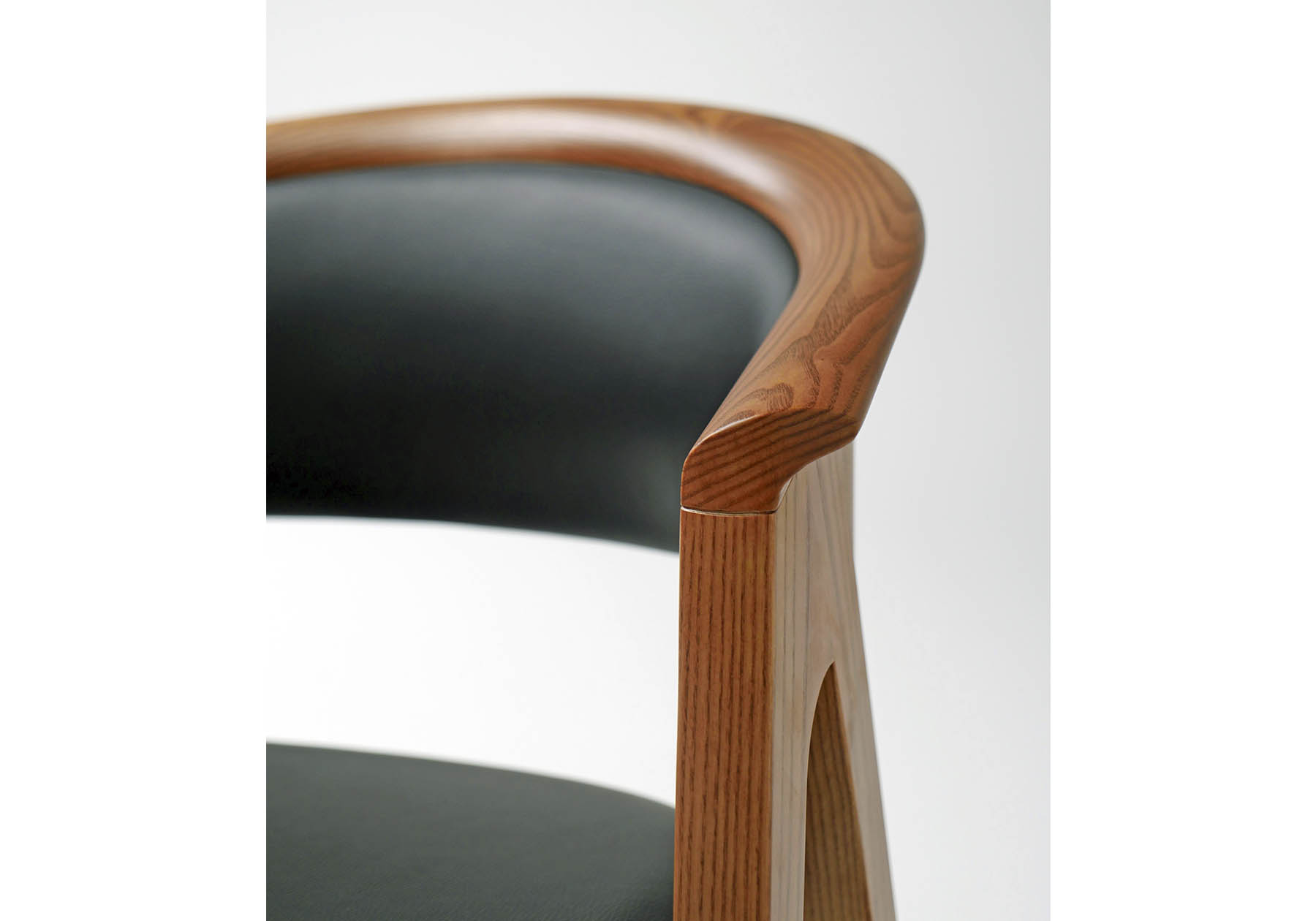 背からアームに繋がる削り出しの背部は、ホワイトアッシュ無垢材を使用し、背を受ける部は成型合板とウレタンフォームが優しく腰を包みます。程よい硬さの座は奥行き感とゆったりとした幅広いサイズで、堅牢な成型合板をカーブした形状に、密度の高い上質なウレタンフォームを多層に重ねたクッション材を使用して、長時間のビジネスワークにも耐えられる座り心地にしました。手が触れるアームや背上部、脚部には抗菌コートされたホワイトアッシュ材を使用し、安全性も追求しました。オプションの抗ウイルス塗装と抗ウイルス革やファブリックと合わせ、より安全性の高い製品としてお使いいただけます。
