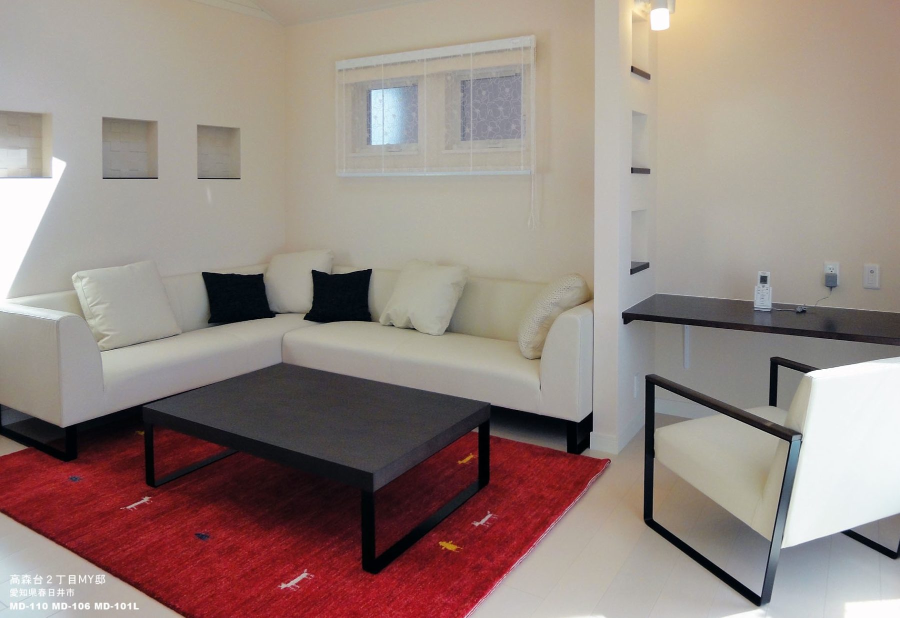 リビング・ルームの居室内に合せて、特注サイズのソファが、文字通り、あつらえたようにピッタリ!!な インテリアになり、ご注文をいただいたお客様も大満足。また、一人掛けの皮革張りソファは、他社の追随を許さないコストパフォーマンスで、 長く愛用していただけると確信しています。