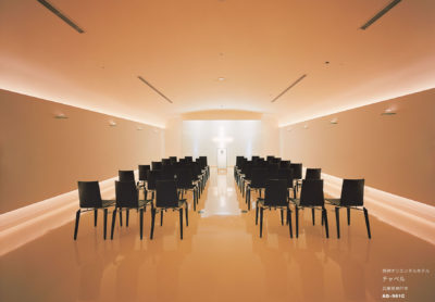 そこで採用したのが、白い空間とは対極的なカラーの黒い椅子。シンプルで無駄な装飾をしていないのに存在感があり、厳かな雰囲気を形成しています。