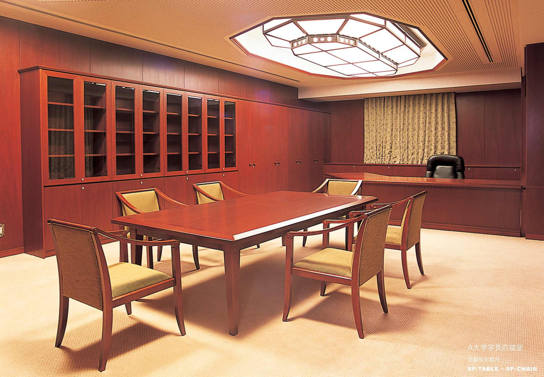伝統ある大学にふさわしい空間づくりのために、雪見障子など、古来様式の持つ形態に着目し導入。また、「端正で洗練された形態」「厳選された素材」「確かな技術」によって製造された家具を配置する事で、大学の優れた技術力などを表現しています。