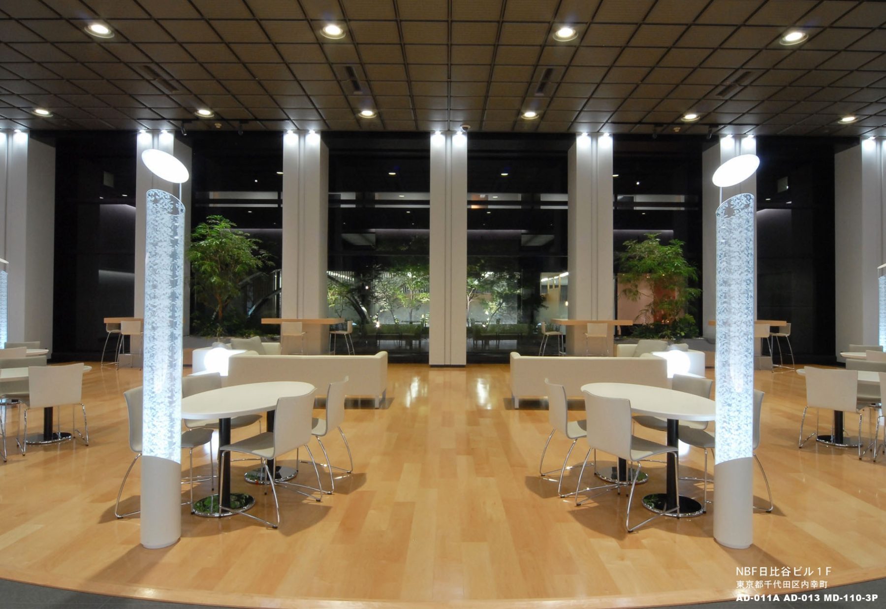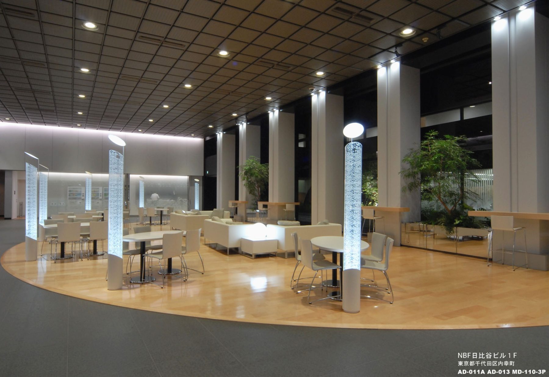 竣工26年目の”NBF日比谷ビルの新たな再生”がテーマにして、暗く冷たいイメージを、明るく暖かい雰囲気にリニューアルしました。 ラウンジは、様々な使い勝手が出来る、明るい色彩の家具を配置しました。リニューアル後、ラウンジの利用者は、かなり増え、評判も良く、実際の稼働率も73%から100%近くに挙っています。