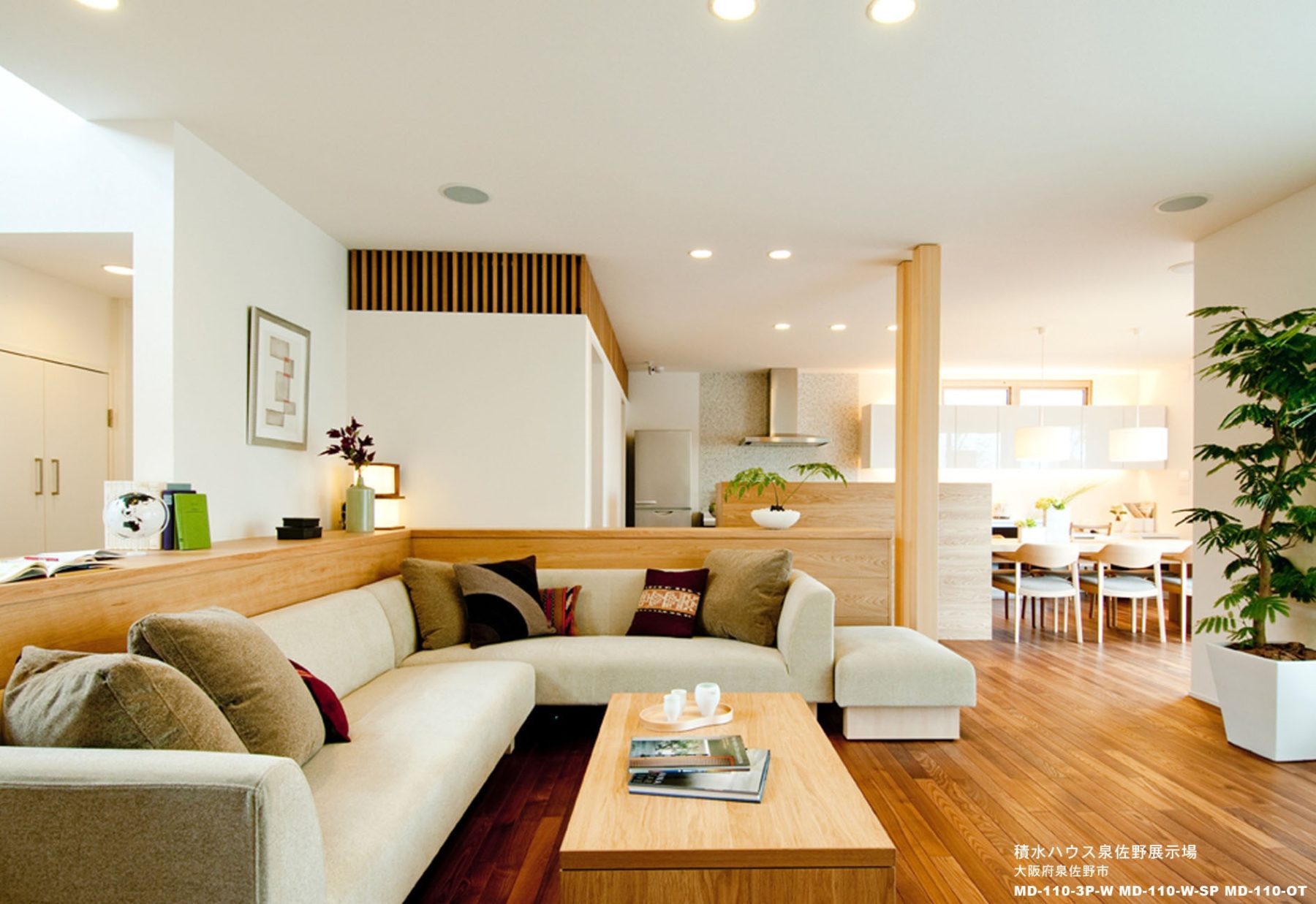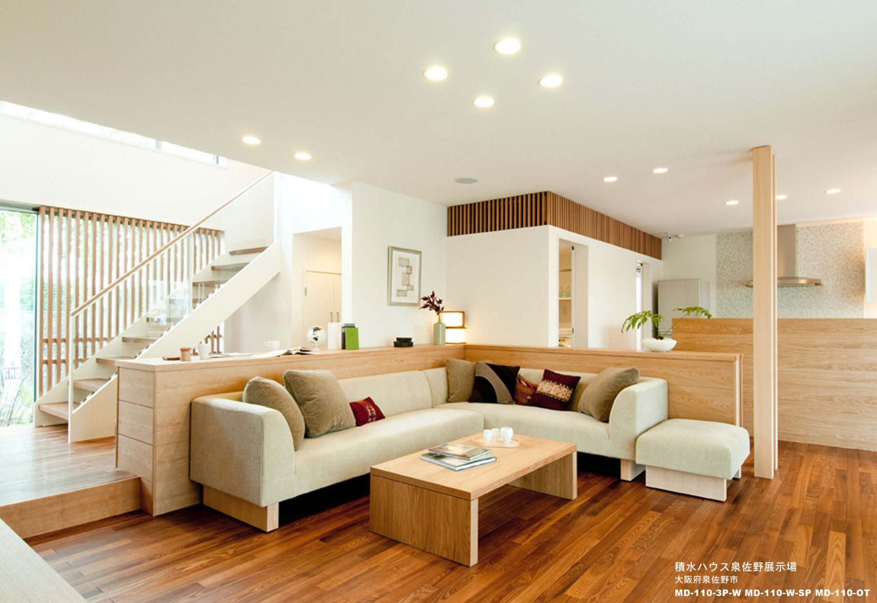 共働き世代向けの子育てを中心にしたプランです。それに合せて、内装に和の要素を少しいれつつ カジュアル感を出した明るいテイストで仕上げています。素材は、無垢のフローリングに、ナラの造作材をふんだんに使い、 自然素材をたくさん取り入れています。
