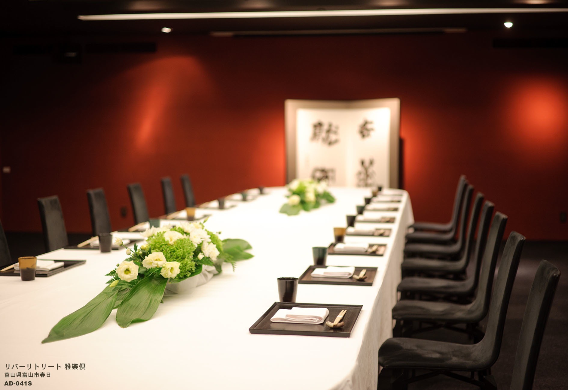 その昔、山中でお経を読む仙人が、川音の大きさで経が聞こえない事を 川に棲む竜王に嘆願すると、不思議にもその神通力で川音が消えたと。そんな逸話を持つ神通川の傍らに佇む様に建つリバーリトリート雅樂倶。