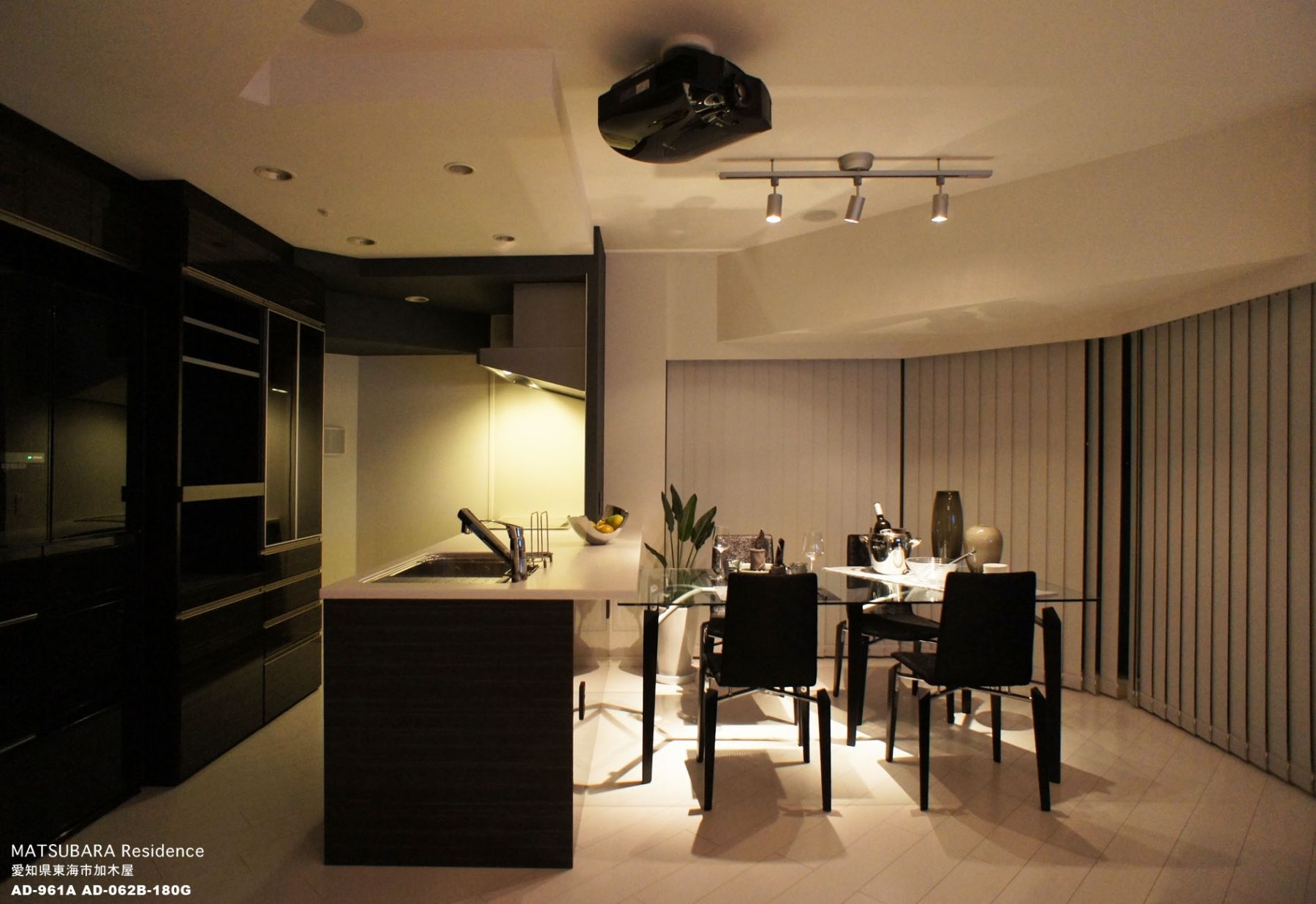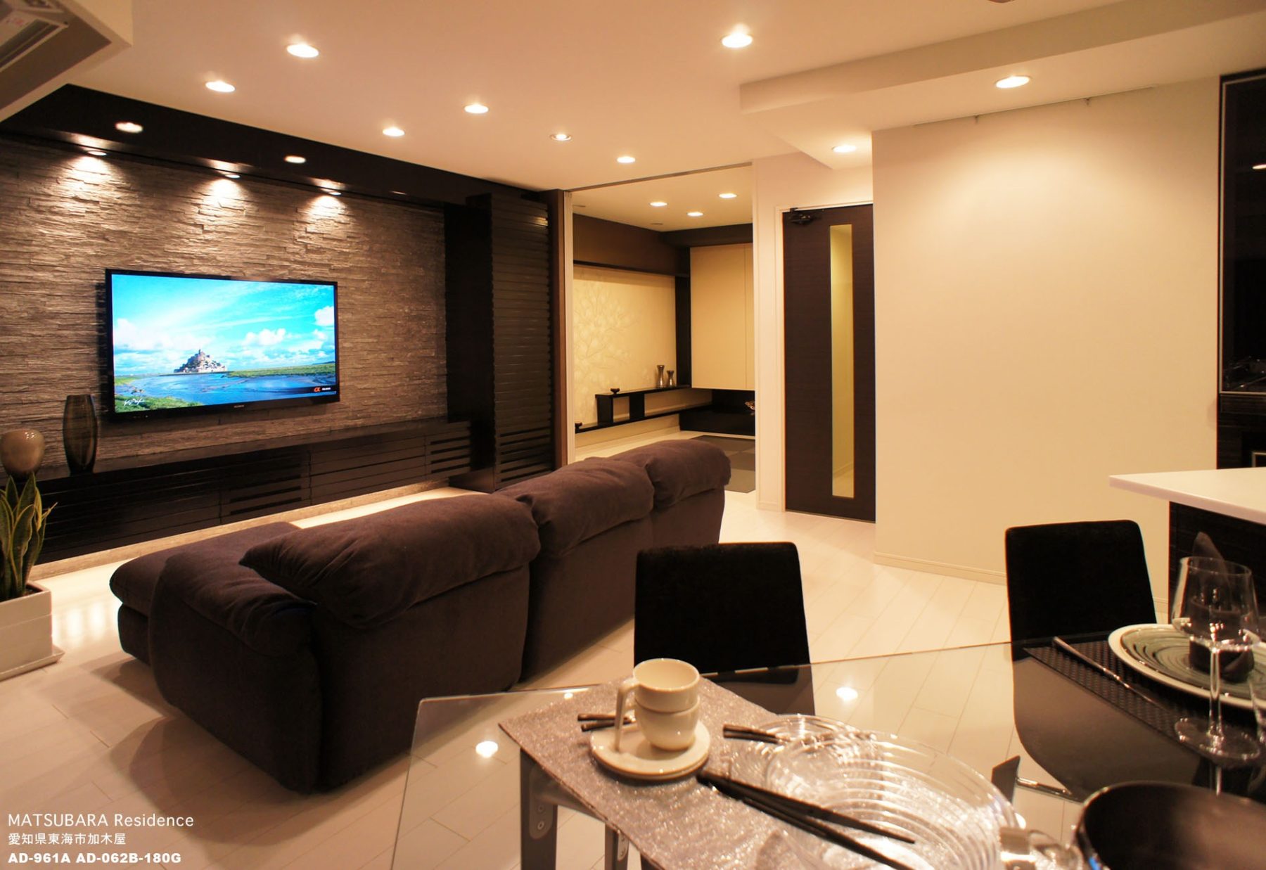 また、リビングやダイニングから、映像を楽しめる様に、TVボードを機能的に設え、置き家具は、その邪魔に ならないサイズを選んでいます。