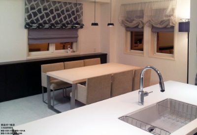 キャリアの有る40代ご夫婦2人住まいのイメージに合わせ、大理石調フローリング、 フロート型のアイランドキッチンなど、ミニマムながら高級感の有るインテリアをご提案しました。