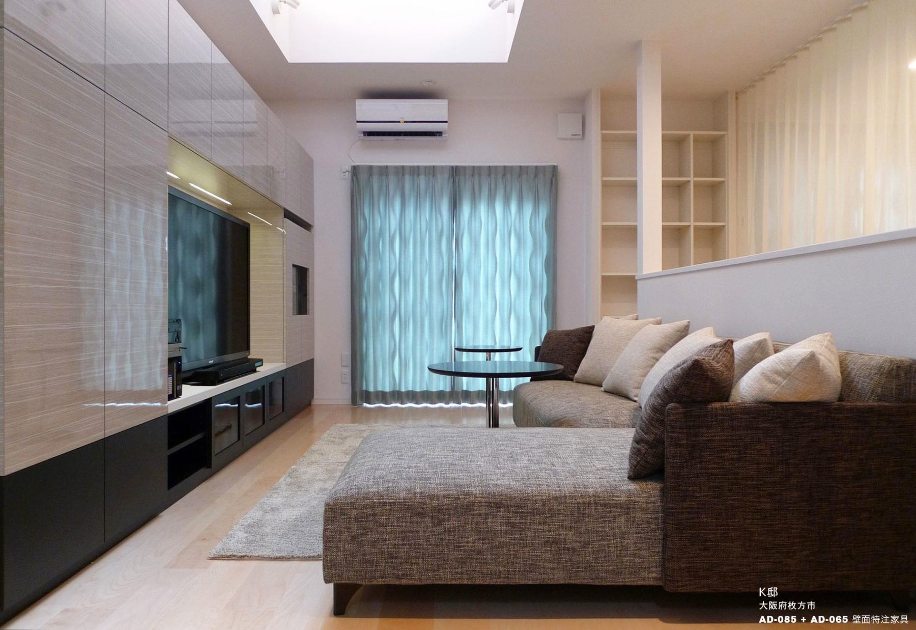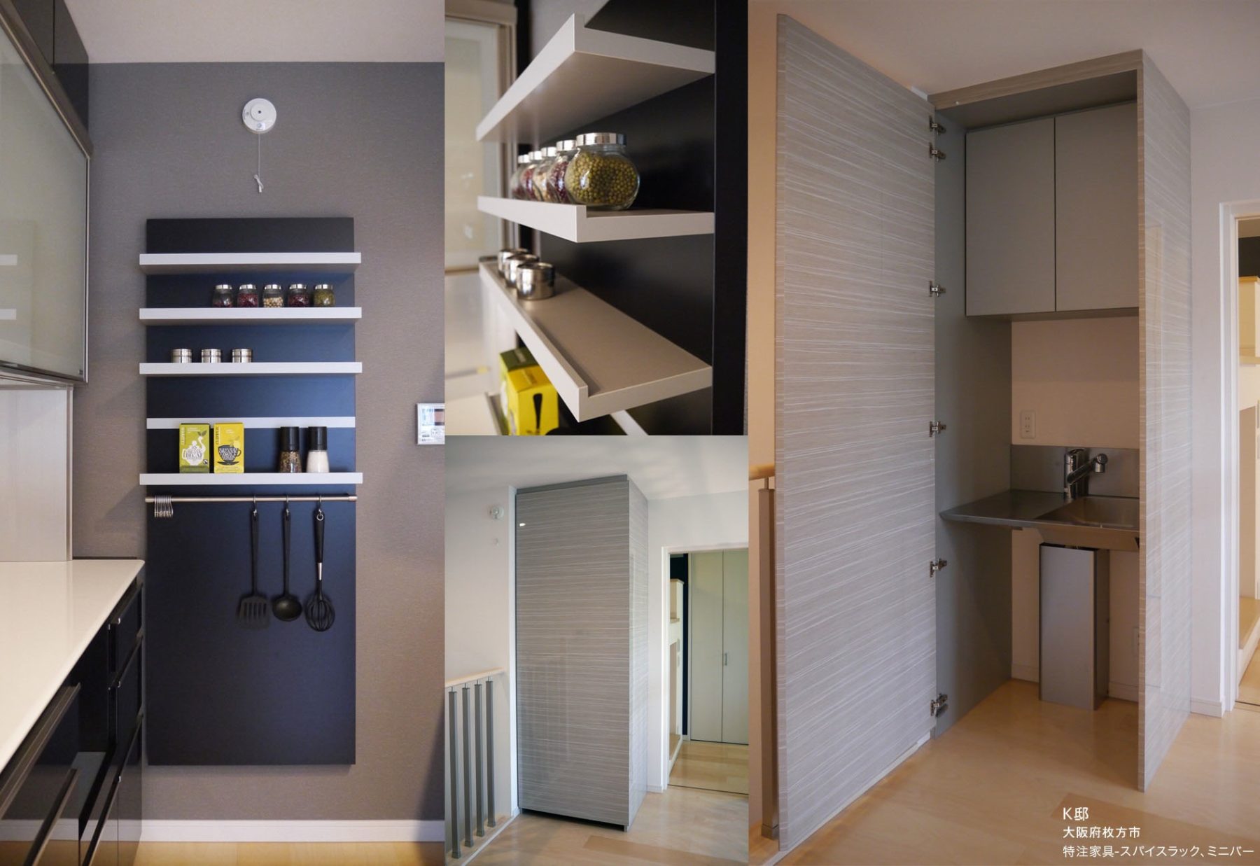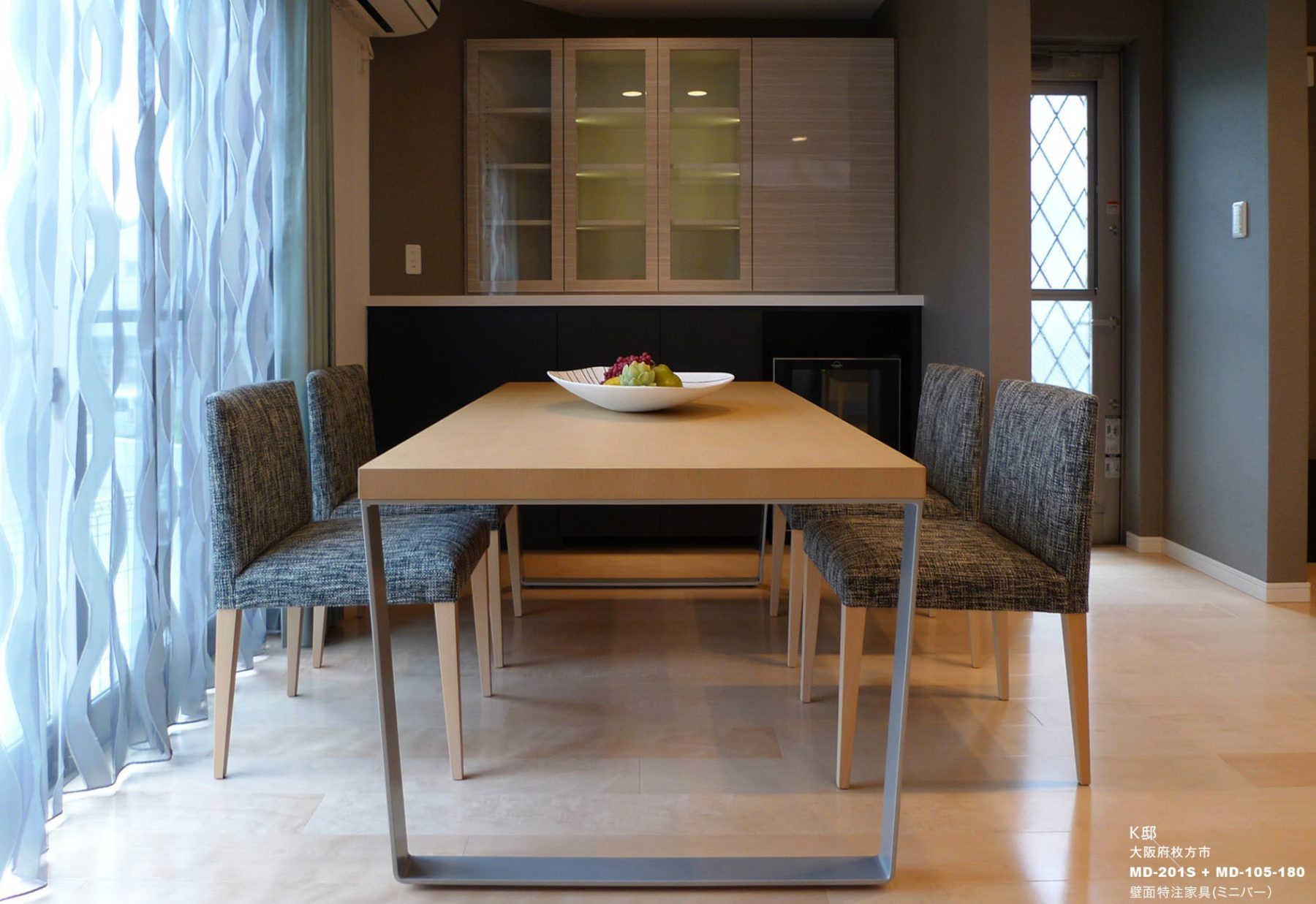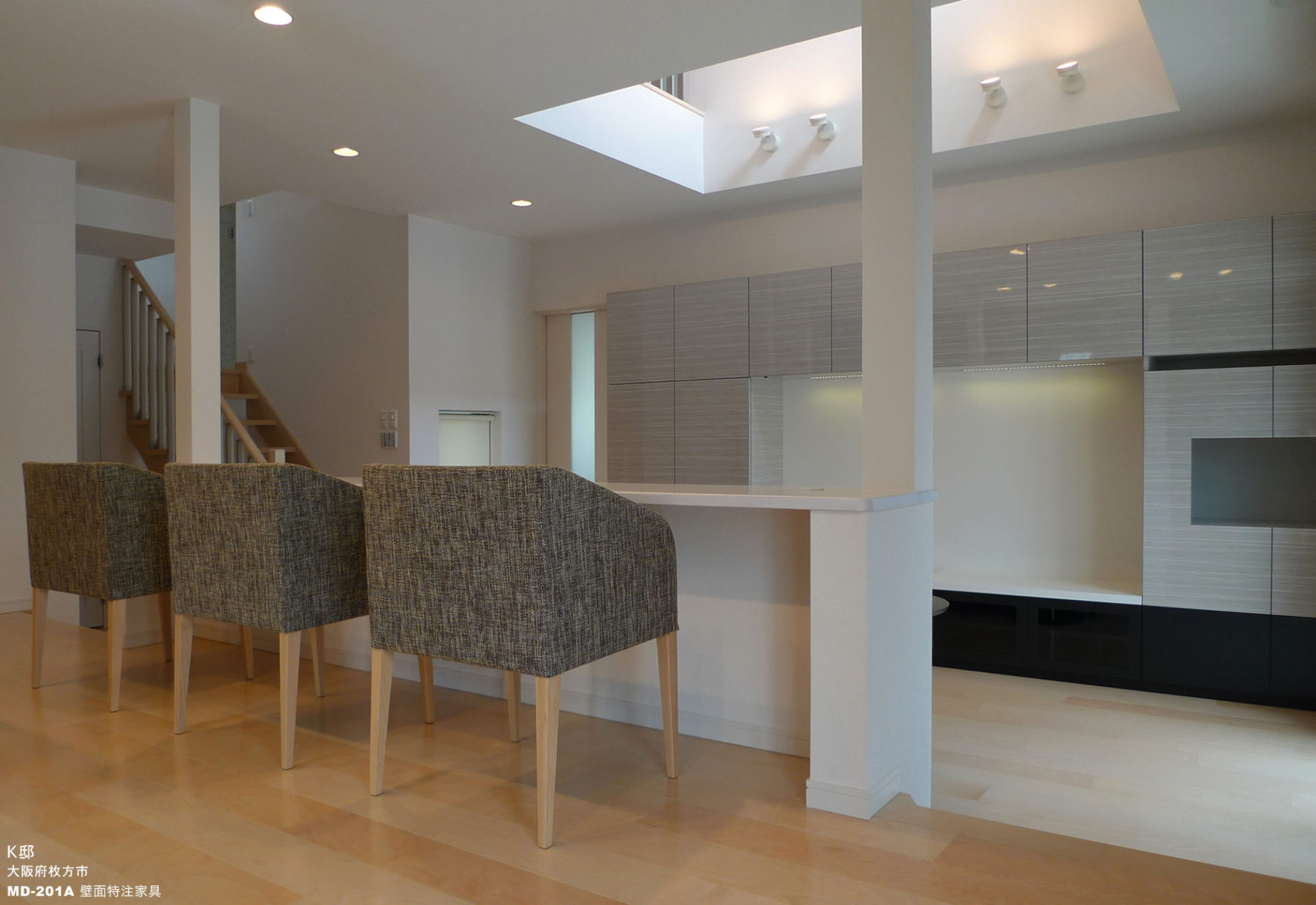 新築初期段階から関わらせて頂いたことで、内装やキッチン面材と合せた、特注家具をご提案することが出来、 細部にわたって、どこにも無いオリジナルな家具、インテリアが完成しました。