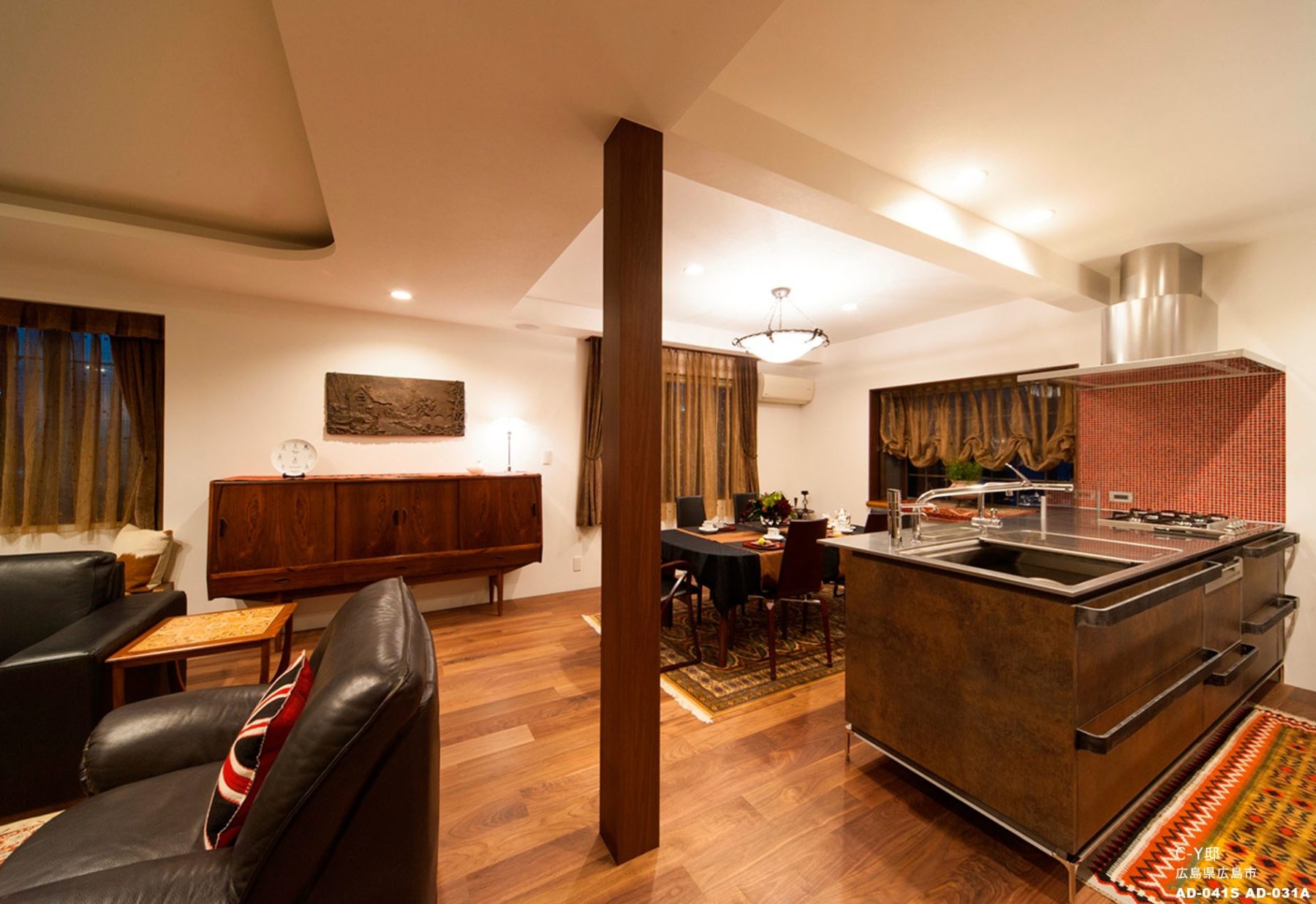 築25年のLDKの改装工事。ウォルナットのデンマークフローリング、奥様が旅先で一目惚れしたインテリア小物たち。 重厚で深みあるLDKに仕上がりました。ハリウッド映画のワンシーンを思わせる憧れの上質な空間です。 Y様ご自身によるテーブルコーディネートがさらに空間を引き立たせます。