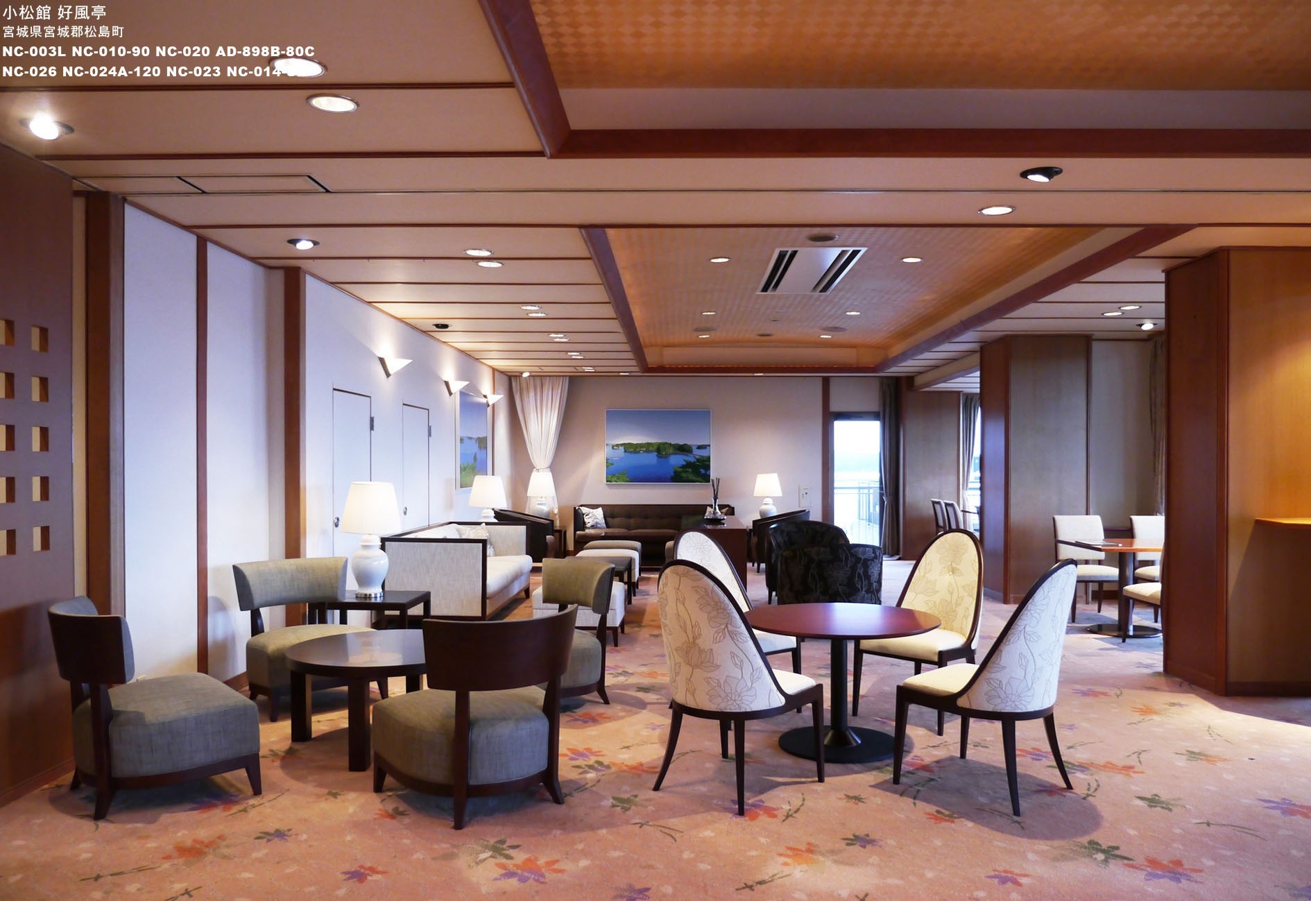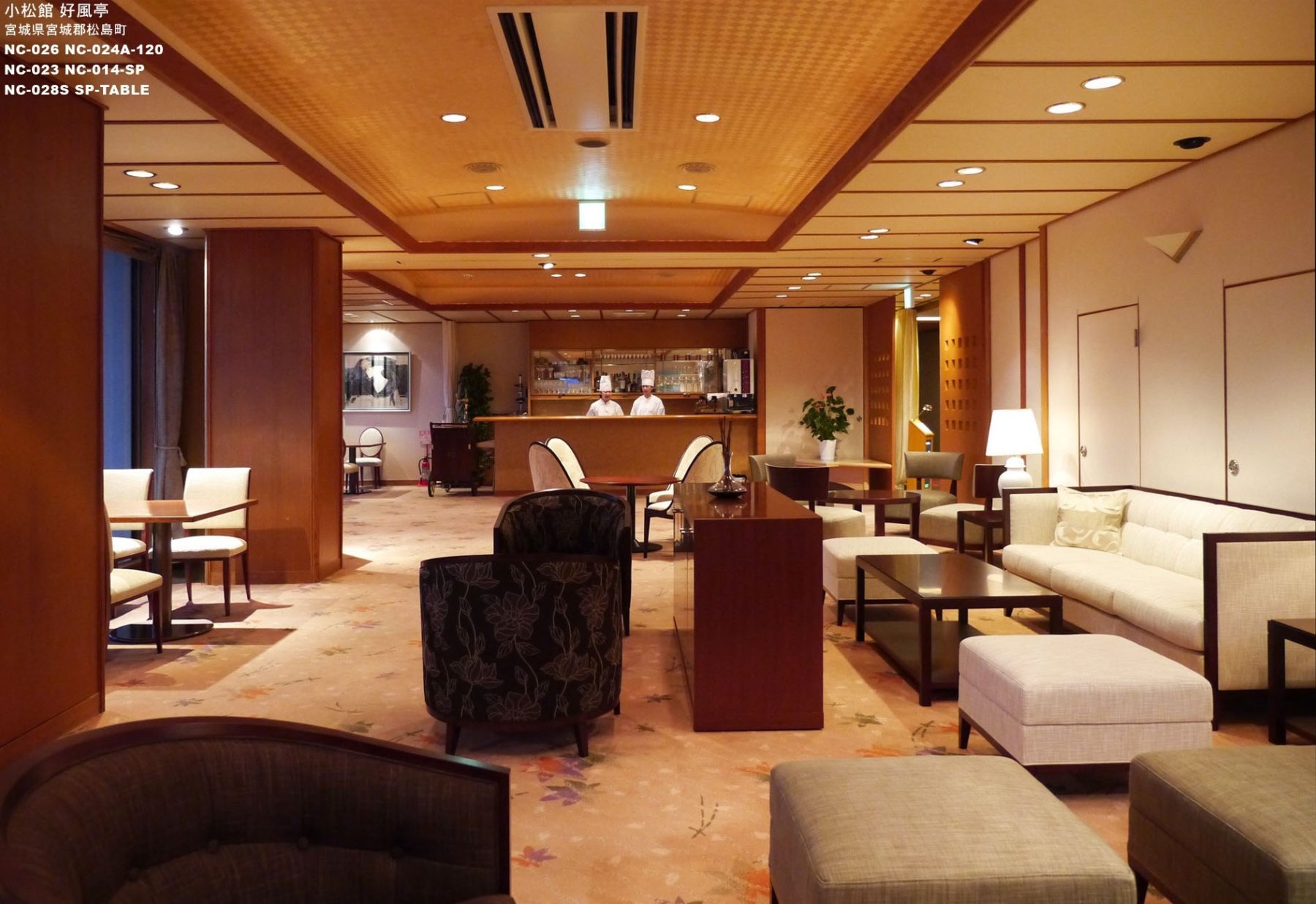 ロービー、ラウンジ共に小松館らしい上質さをテーマにプランニング、製作いたしました。内装はそのままで家具だけでのリニューアルでしたが、和モダンのロビー、上質なクラシカルモダンのラウンジとして生まれ変わりました。