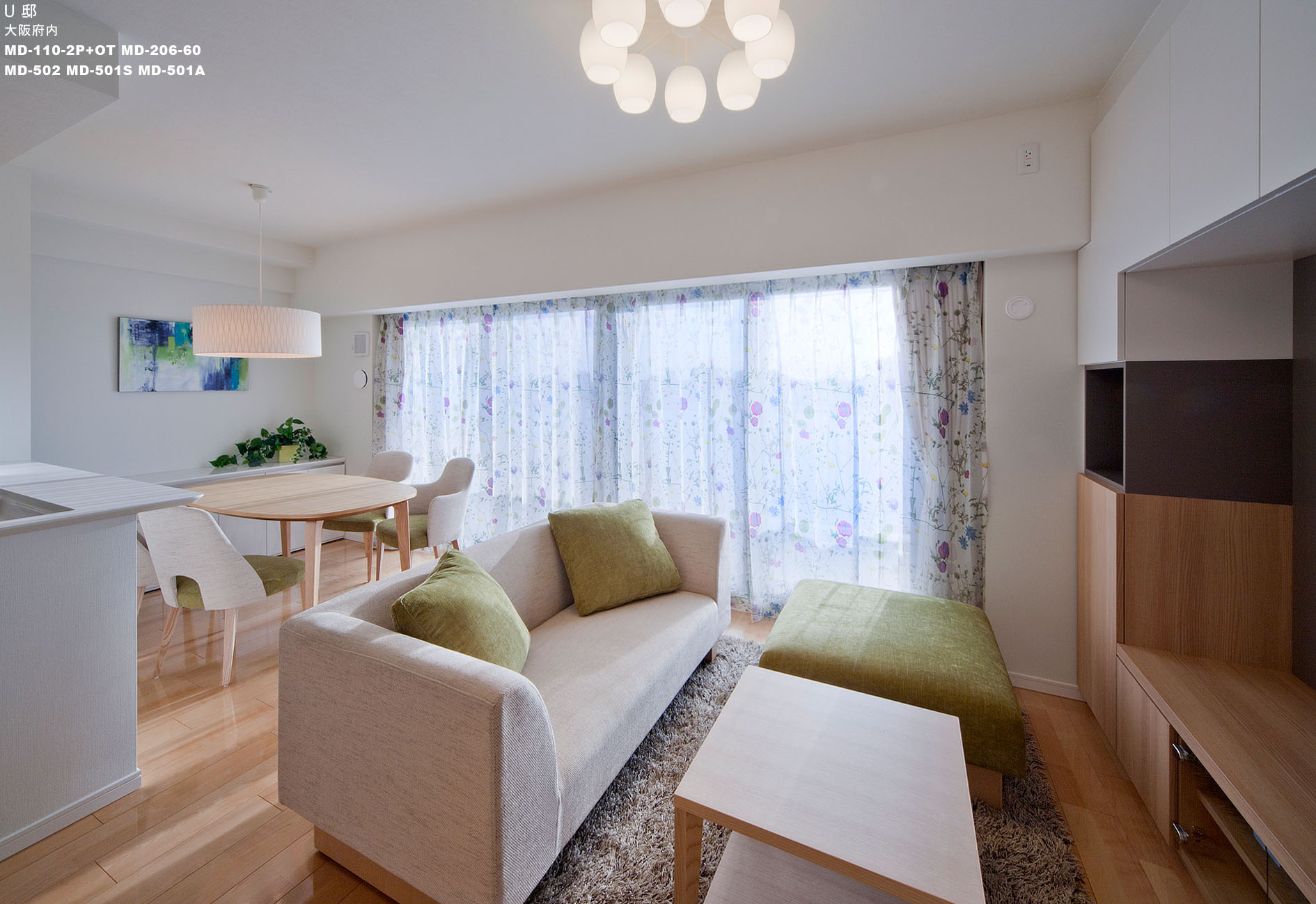 ご新築マンションご購入にあたり、トータルにインテリアを担当させていただきました。 優しいフォルムのソファ、ダイニングセットが、お客様のお好みのイメージにぴったりで、明るく爽やかなインテリアにまとまりました。インテリア全体の雰囲気とトータルコーディネートし、生地をセレクトしたチェア、ソファの張分けも、とてもお気に召して頂きました。