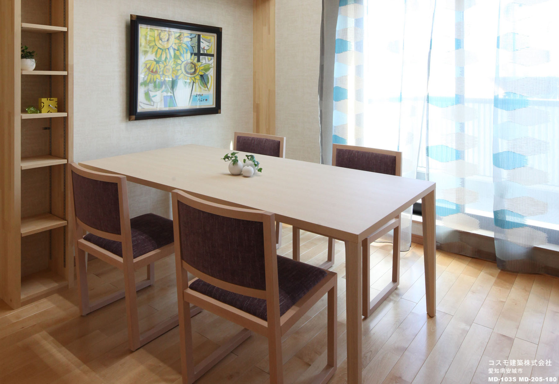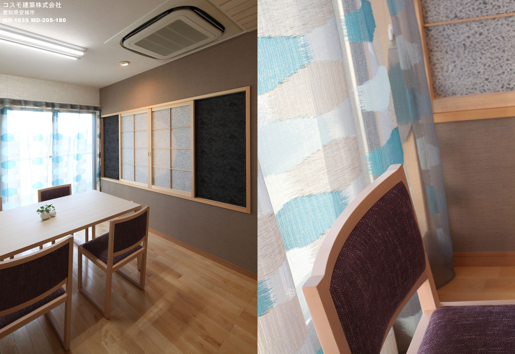 当社製品採用の理由:木の椅子で素材を活かした仕上げと飽きのこないシンプルなフォルムが「白木、現在和風、30〜40代が好む都会的な雰囲気の空間」に合ったため。
