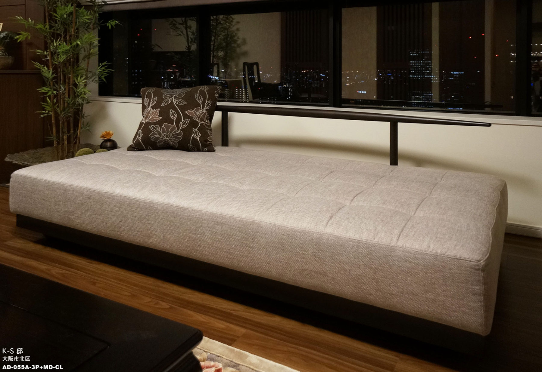 当社製品の採用理由:お客様が、ソファベットとしても使用できるもの + デザイン性を重視されていました。そこで、スタジオーニは座面にポケットコイルを使用していること、サイズも一部オーダーすることができること、その実用面と背クッションを外すと和モダンのイメージとなるという、他にはないデザインの美しさを兼ね備えたソファだったので選択しました。