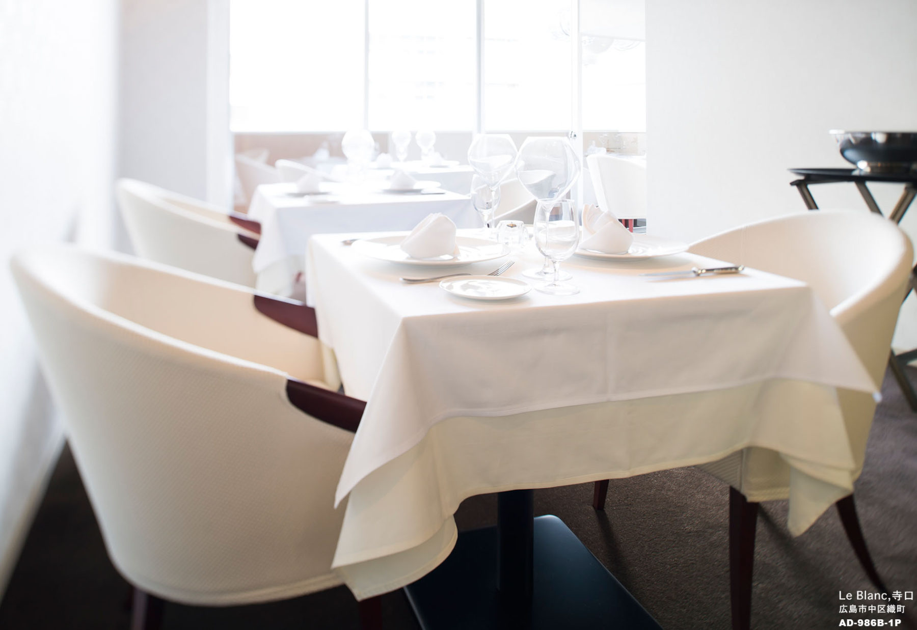 料理を邪魔しない色使いとして白をベースにしてコーディネートしました。
