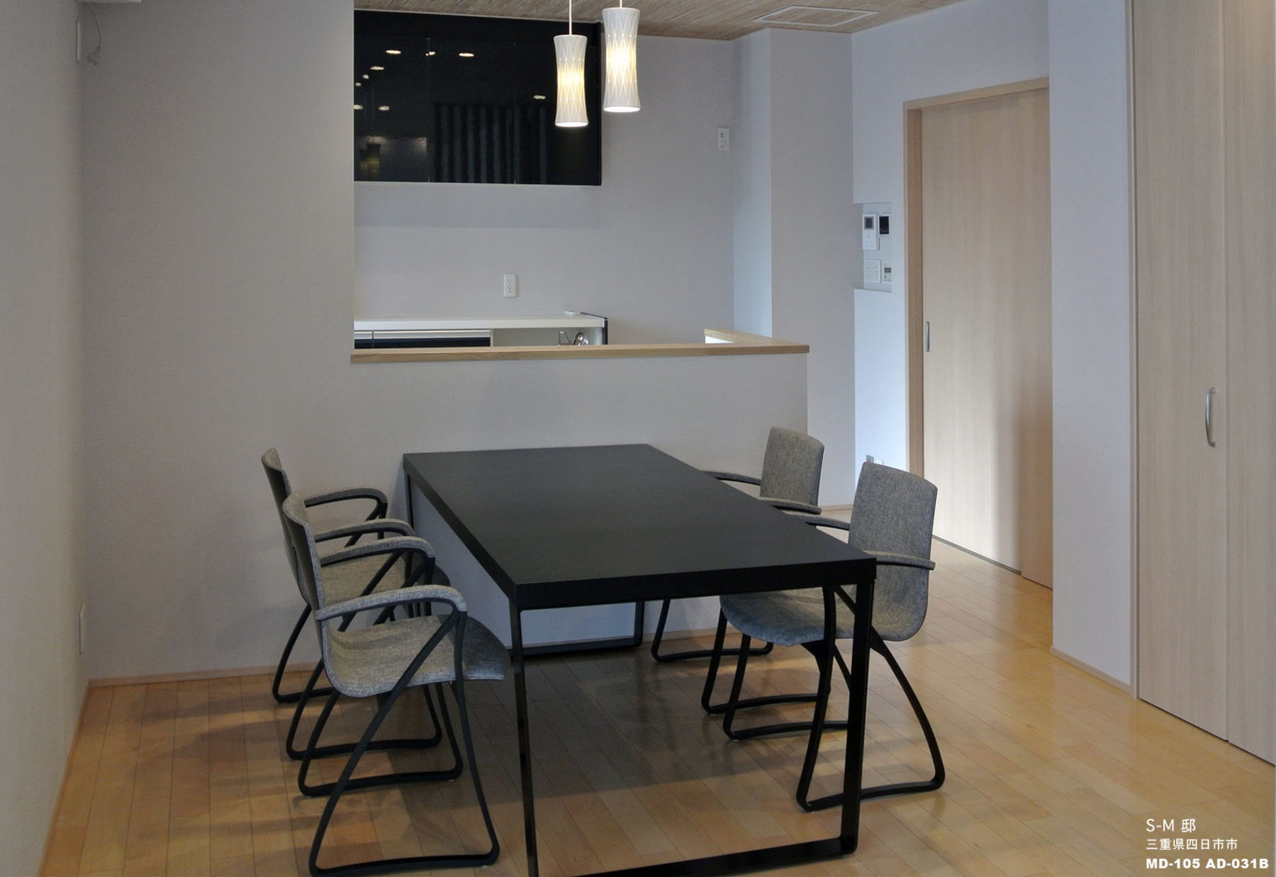 家具の色は黒をというご要望で、AモードのテーブルとLINEAの組み合わせを選定しました。チェアはショールームでご主人様が大変お気に召したデザインです。天板はあえて光沢をなくしてマットな仕上げにしています。