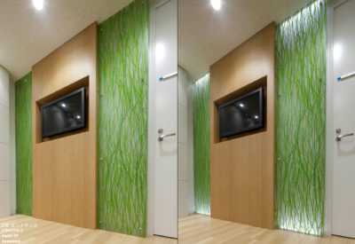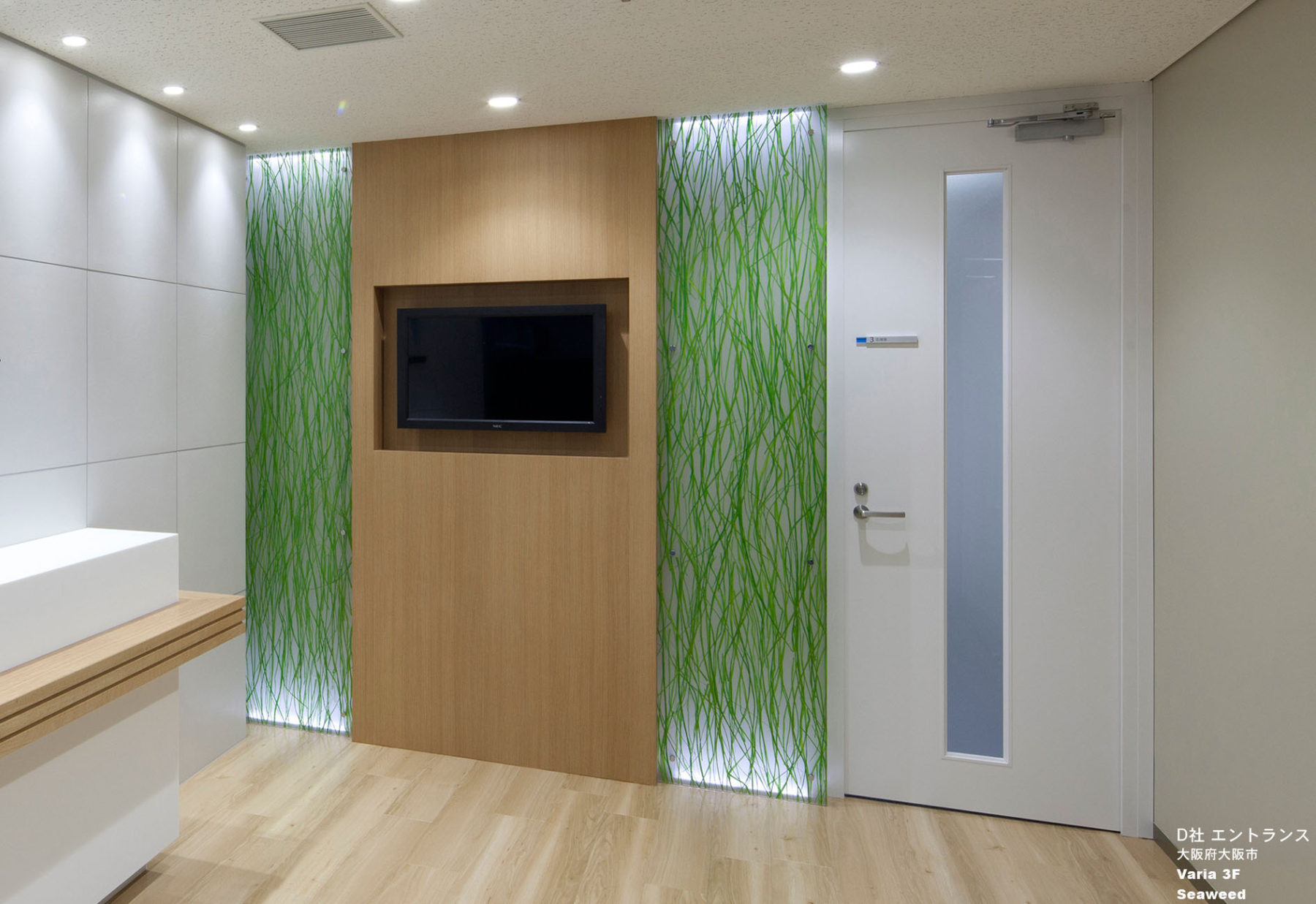 白と木目の空間にアクセントとしてVariaを施工しました。 自然素材を使用しているデザインが採用のポイントでしたが、環境に配慮している事やメンテナンス性に優れている等、意匠以外の面でも高く評価して頂きました。