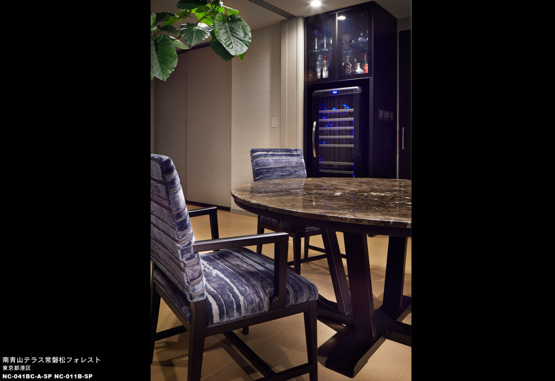 和のテイストを入れたかったため特注で黒染色塗装を採用し、布地も選定もごだわったコーディネートとしました。