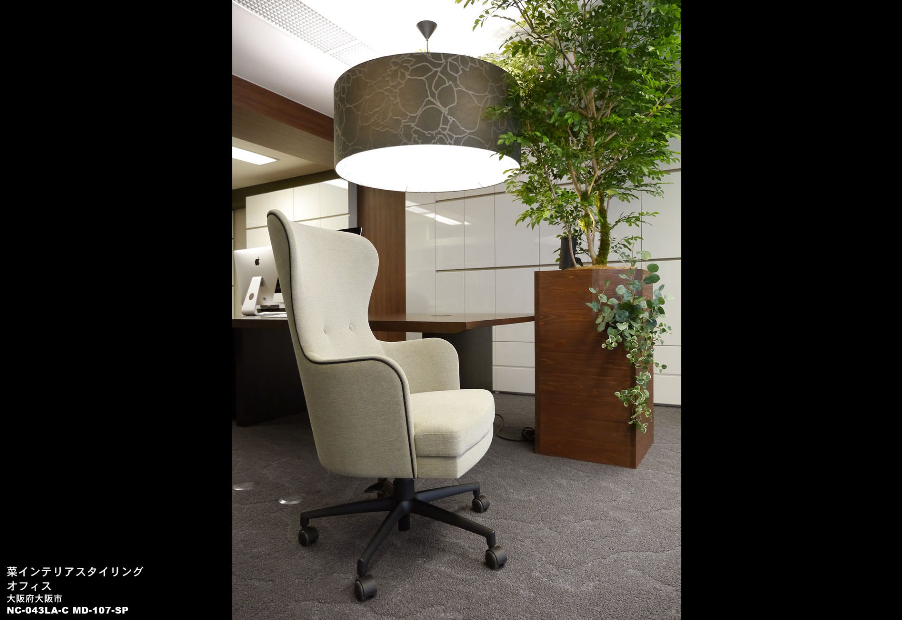 納入後の感想:テーブルは、想像以上に大満足の仕上がりで、お客様にも好評です。PC作業や、ミーティング、コーディネート作業など、ひとつのテーブルを色々な用途で使用でき、重宝すると同時に、温かみのある無垢の上質感がとても気に入っています。ウィングバックも、かけ心地が良さそう、、、という見た目そのまま、本当にかけ心地の良いチェアです。身体によい色温度の照明にもこだわり、今までのオフィスという概念にこだわらない、心地の良い空間が完成しました。