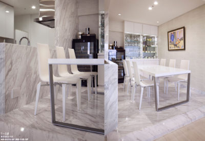 大理石を基調に、白いモダンなインテリア空間作りをしています。
