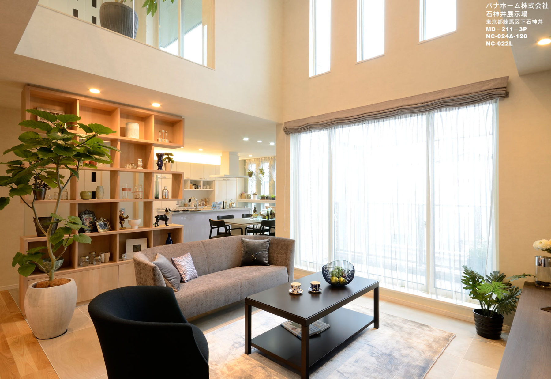 明るく気持ちの良い吹き抜けがあるリビングは、きれいめで上品な中にも、楽しくなるインテリアを目指しました。