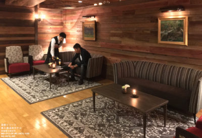 納入後の感想:「 西洋膳処 奥入瀬 」 の顔でもあるウェイティングスペースが、重厚な空間に仕上がり喜ばれています。