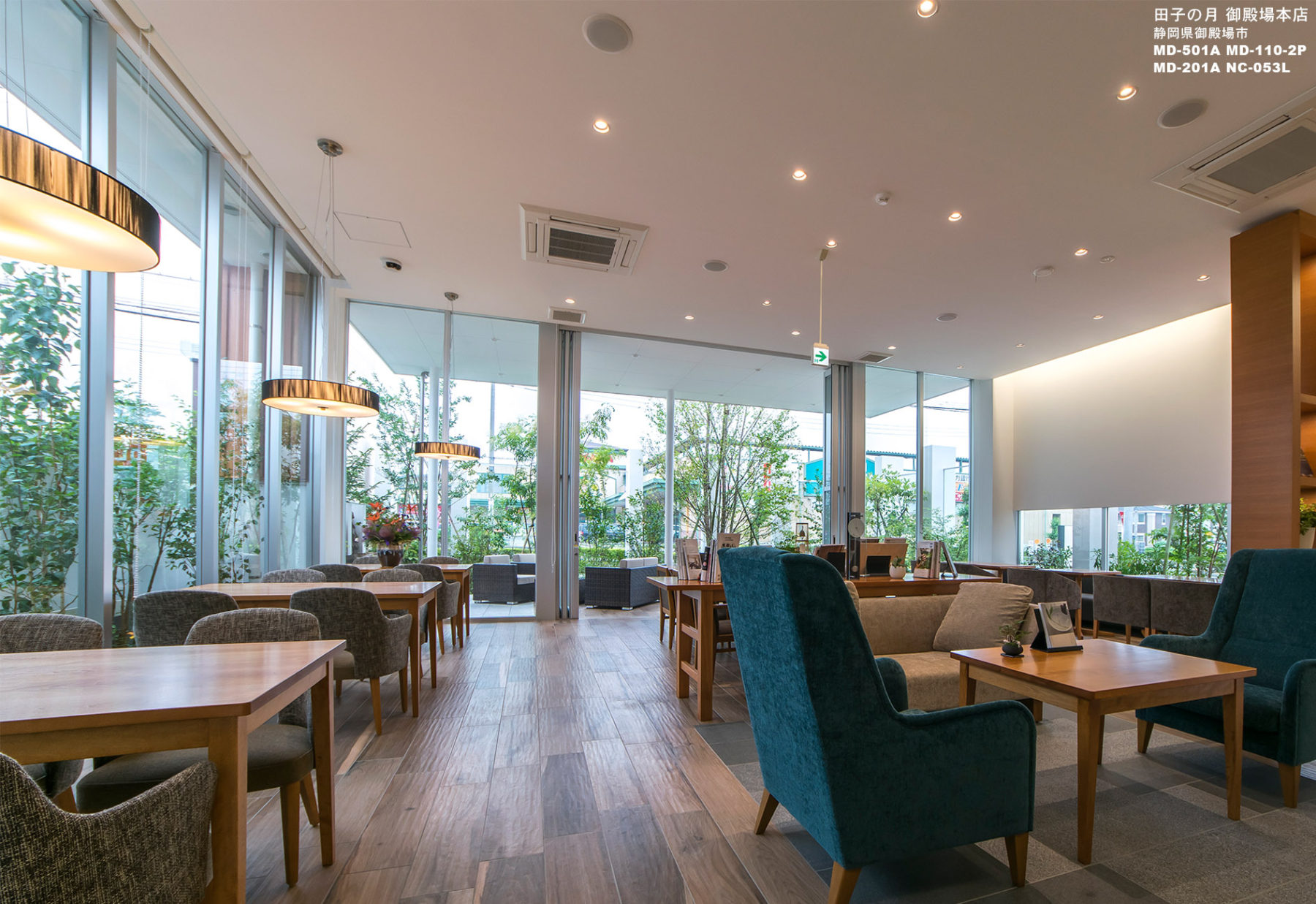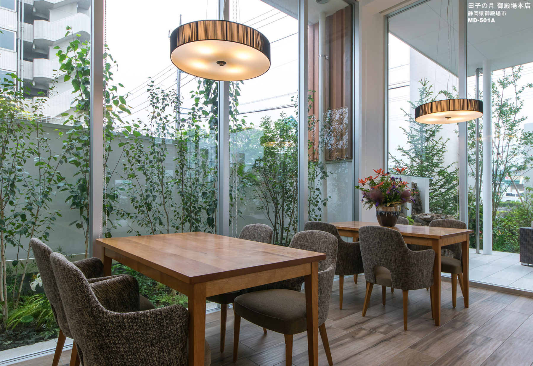 本来純和菓子専門店ですが、御殿場の森があり林がある自然あふれる地域性を活かして、親しみのある自然観を表現しました。また、店内は自然素材をシンプルに使い分けて、品のある落ち着きを表現しています。