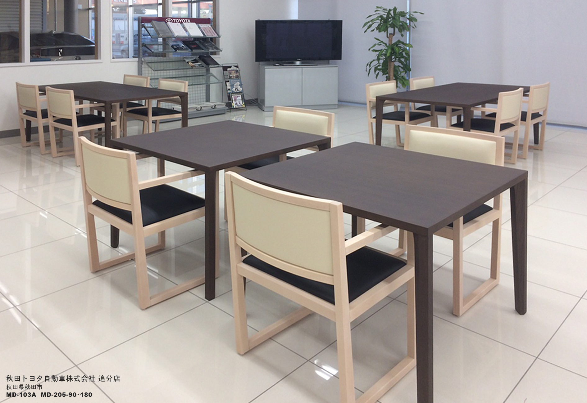 ショールームリニューアルに伴い、店内のコンセプトデザインにマッチしていて、座り心地の良い椅子を求めるとMD-103になりました。ゆったり、ゆっくり座れてとても心地が良いチェアです。