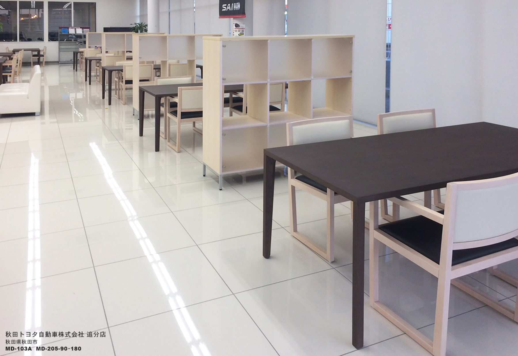 ショールームリニューアルに伴い、店内のコンセプトデザインにマッチしていて、座り心地の良い椅子を求めるとMD-103になりました。ゆったり、ゆっくり座れてとても心地が良いチェアです。