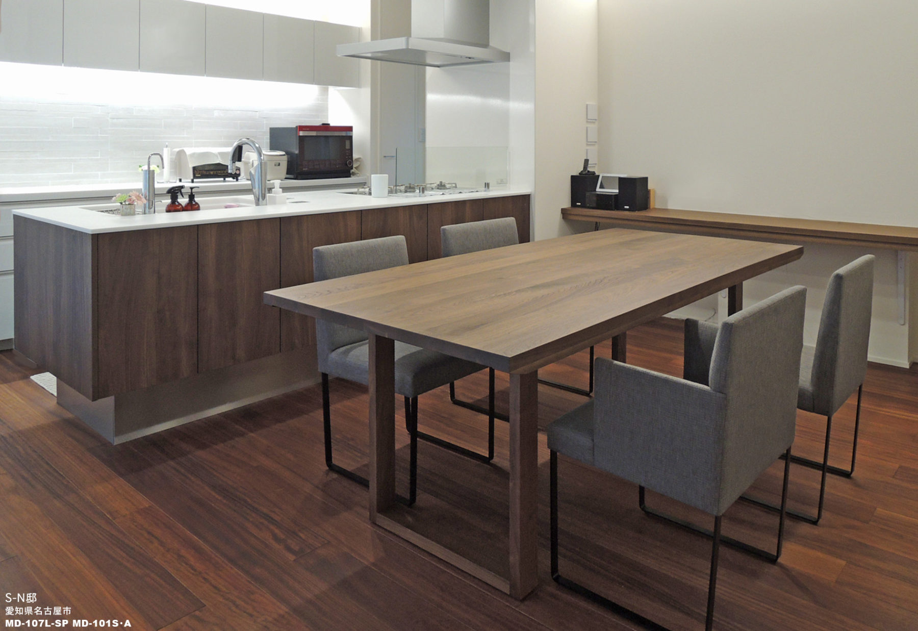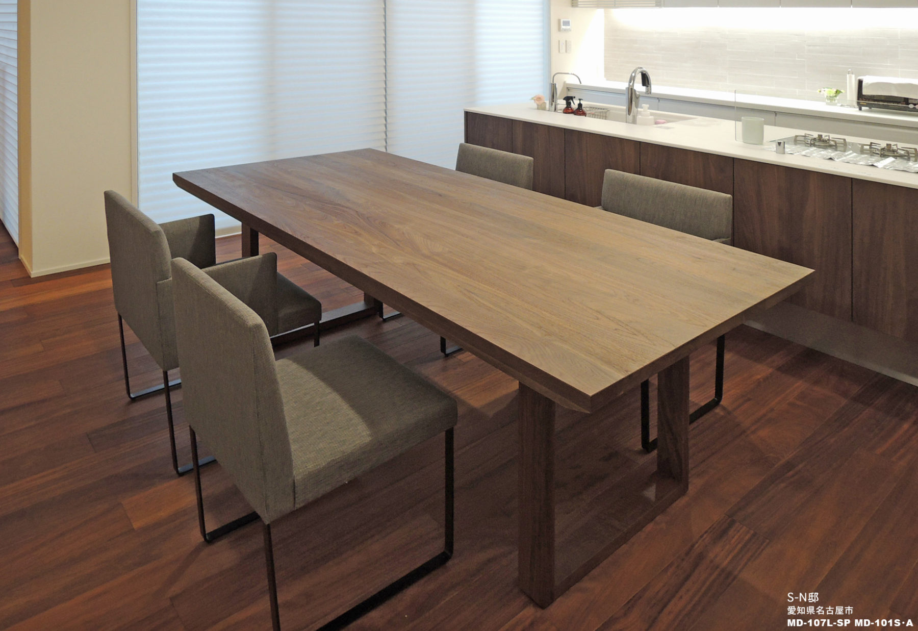 当社製品の採用理由:無垢の素材にスチールを合わせた家具がN邸のめざすインテリアにマッチしていました。スチール脚によるモダンで軽快さが採用の決め手です。