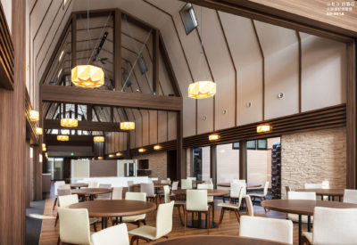 海外の方も多く利用される施設なので、日本人サイズよりも少し大きなサイズを意識しました。デザインはシンプルでデザイン性がありモダンで、ダイニングは暖かみのある場になるよう、木フレームのものを選択しました。