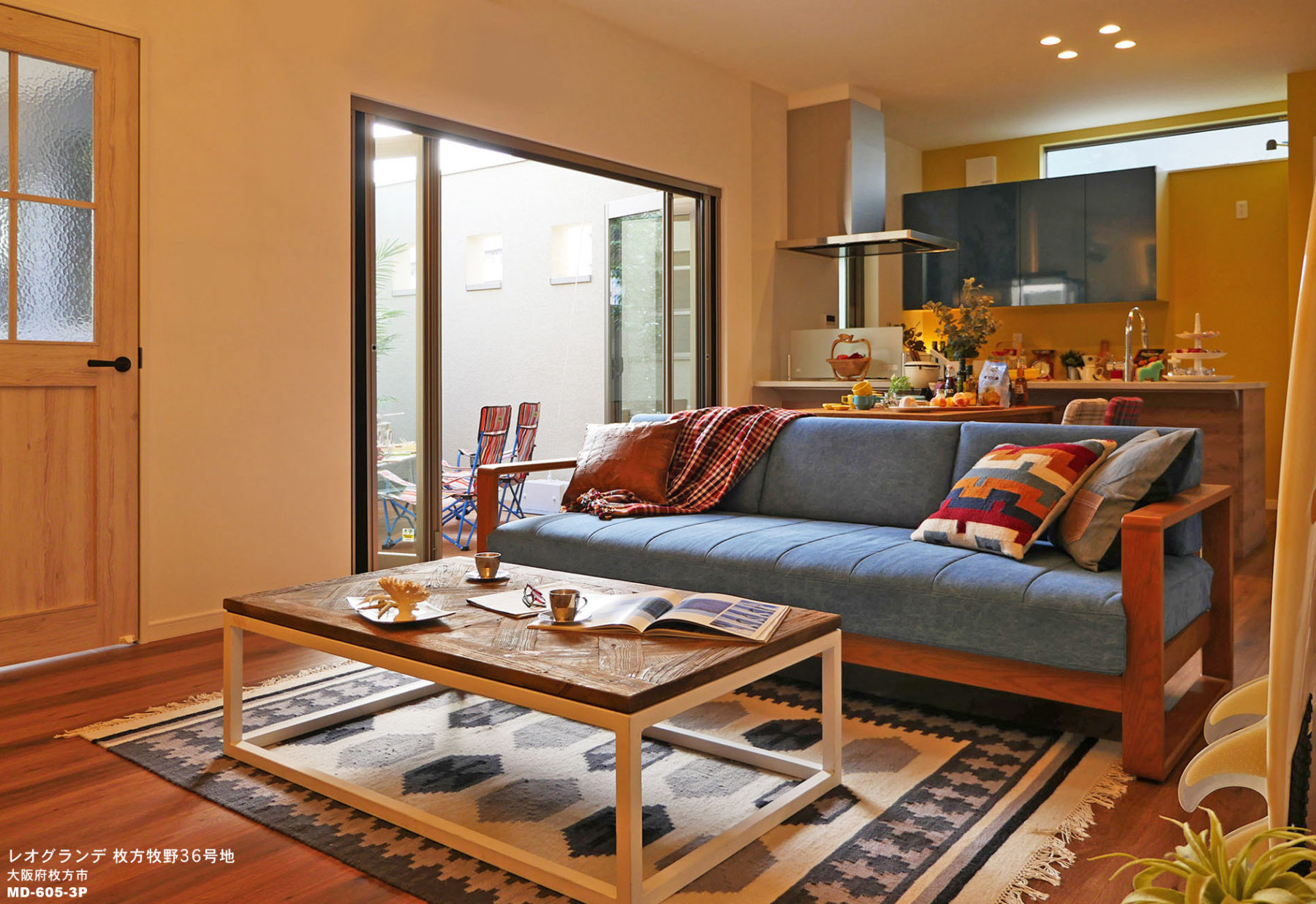 当社製品の採用理由:イメージに合うデニムソファとして、MD-605モデルがぴったりでした。たっぷり掛けられるサイズ感がありながら、フレームタイプのため、限られた空間の中で圧迫感がない点も魅力でした。