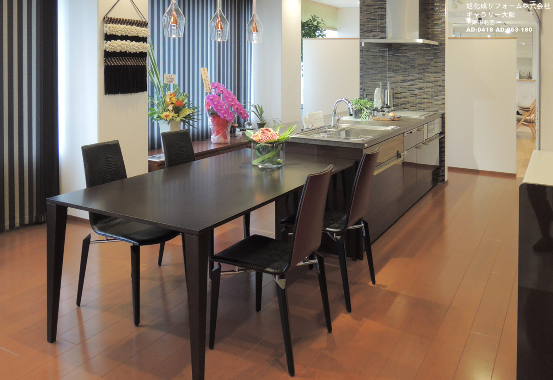 インテリアスタイルの異なる4つのダイニングキッチン空間を展示しているリフォーム向けショールームです。