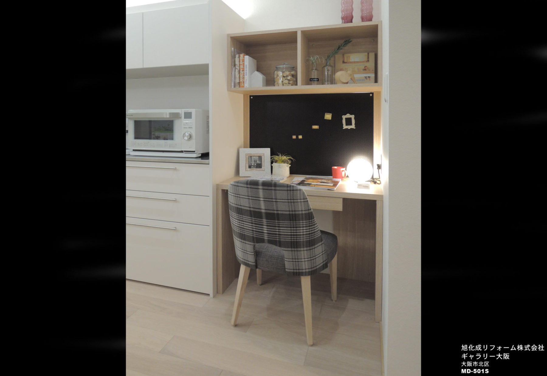 当社製品の採用理由:上質な空間を演出するため、キッチンのセラミック天板ともあう家具を選びました。高級感が有りながらデザインがすっきりしているため重たくなりすぎない事もポイントでした。