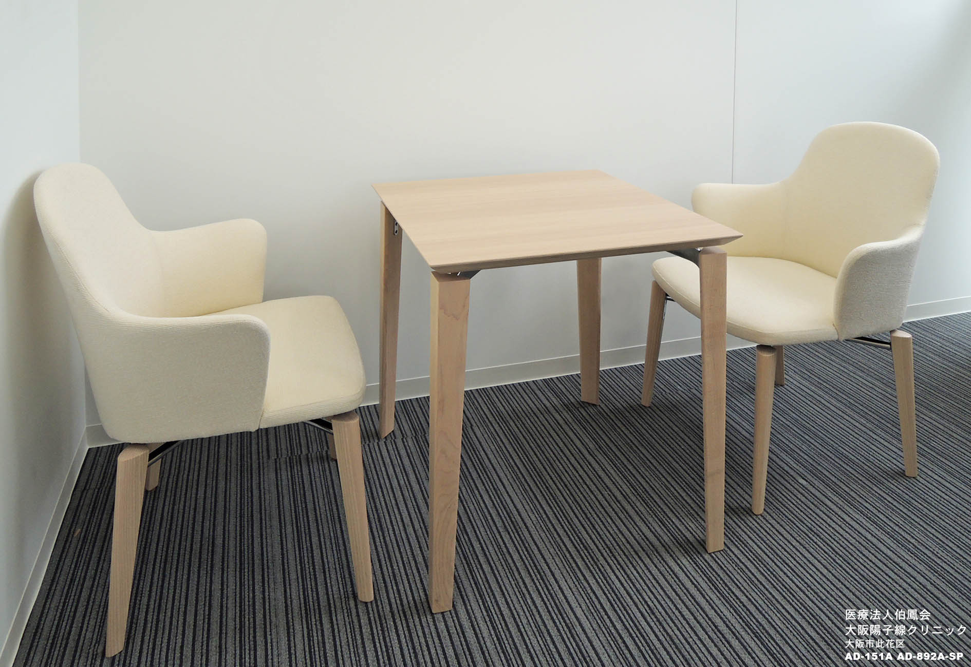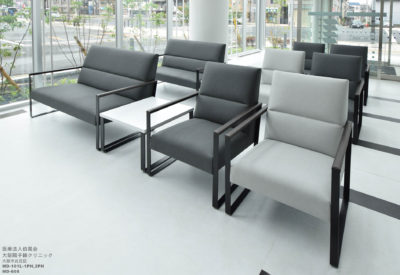 大阪陽子線クリニックは、大阪府内で初めてとなる、がんに対して陽子線を用いた粒子線治療を行う施設です。1Fロビーにはホスピタリティとプライバシーにも配慮したハイバックの待合チェア・テーブルを納品させて頂きました。