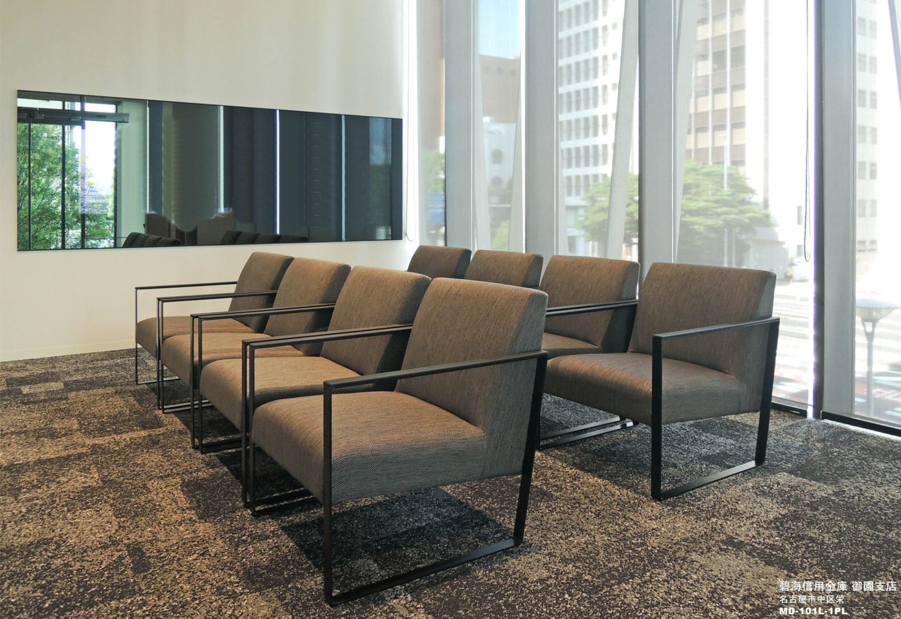 当社製品の採用理由:ロビー空間に合った高級感があり、ゆったりと座れる椅子だったため。