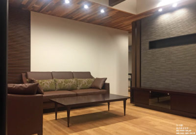 当社製品の採用理由:NC-030ソファは、肘のアールのデザインが手をつき立ち上がり易いとご高齢の方に好評でしたので今回もお勧めしました。木部色とTVボードも同色に合わせ、ソファの脚もお掃除ロボットに合わせて高さ調整をする等特注の対応が細やかです。
