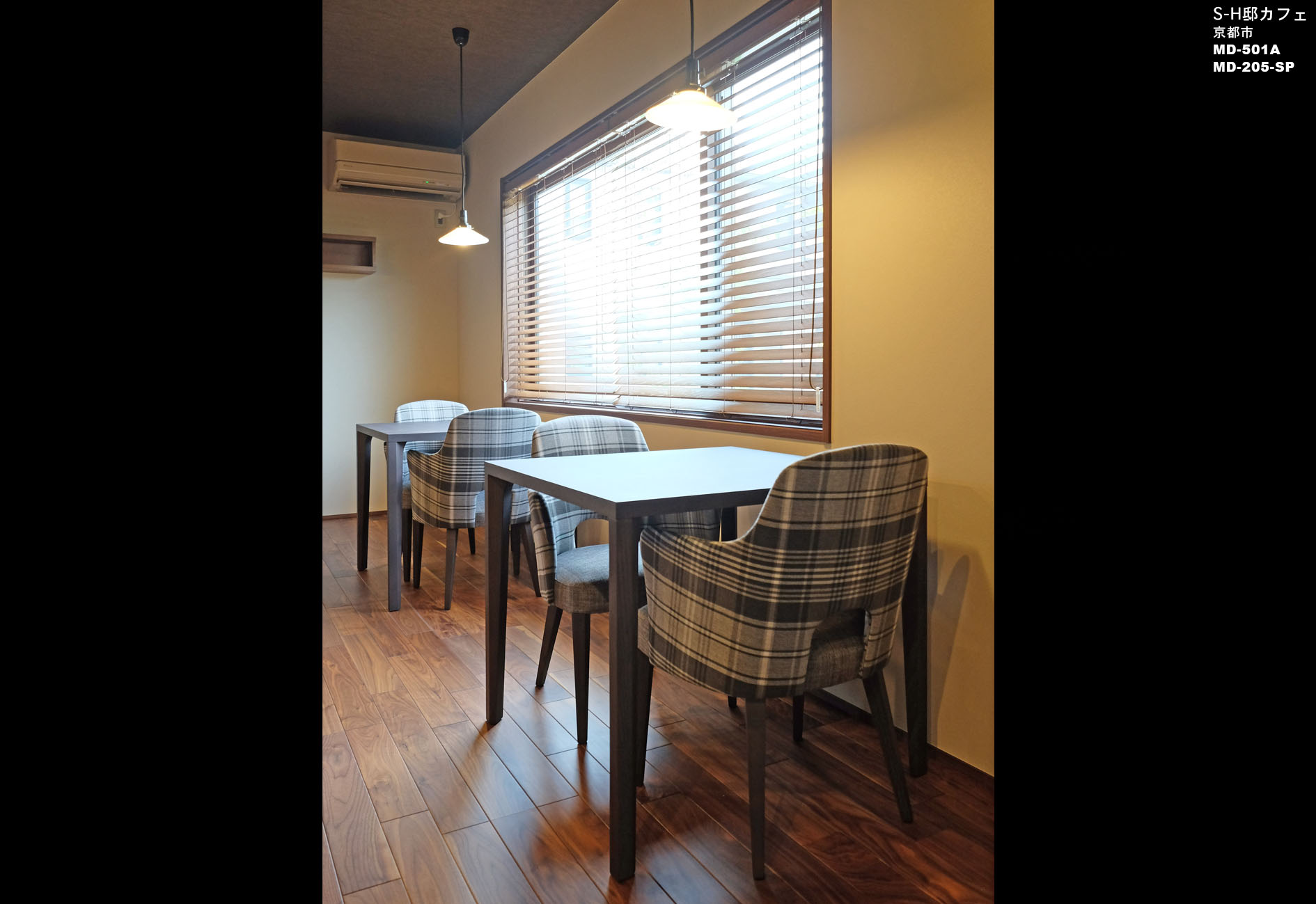 当社製品の採用理由:レトロなインテリアのイメージにピッタリなので、ご提案しました。張り地の組み合わせにこだわり木部カラーを特注することで、違うデザインのチェアとテーブルのイメージを統一する事ができました。またテーブルも空間にぴったりなサイズをオーダーする事ができました。また、座り心地の良さもご提案ポイントになりました。