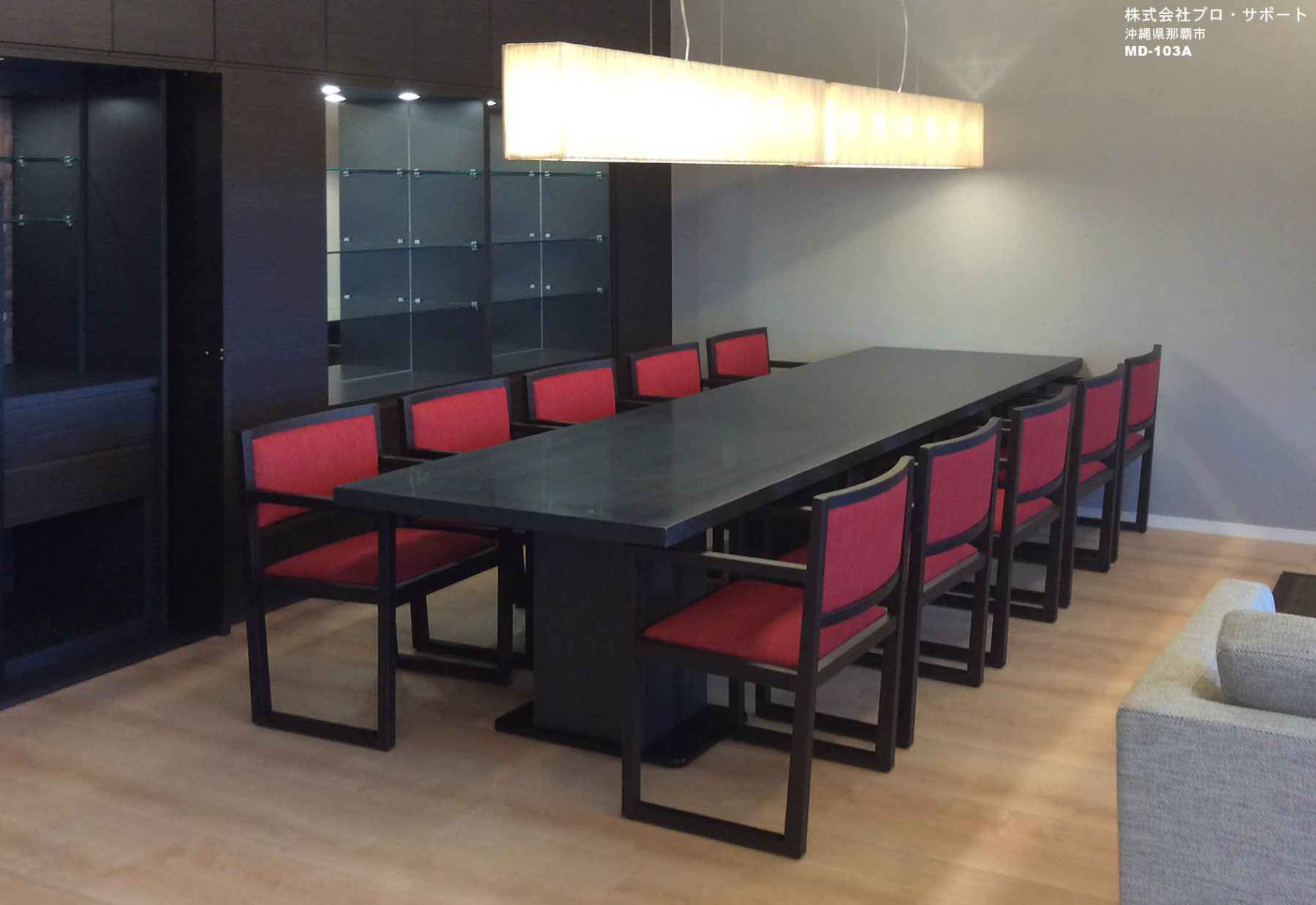 当社製品の採用理由:モダンかつクラシカルなデザインと、深紅のファブリックが格調高く、イメージにぴったりでした。