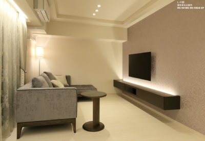 新築マンションへのお引越しに伴い、既存の内装を一部リノベーションさせていただきました。照明計画、家具、カーテンをトータルコーディネートし、単一的なマンションの内装がエレガントで華やかな雰囲気に仕上がりました。
