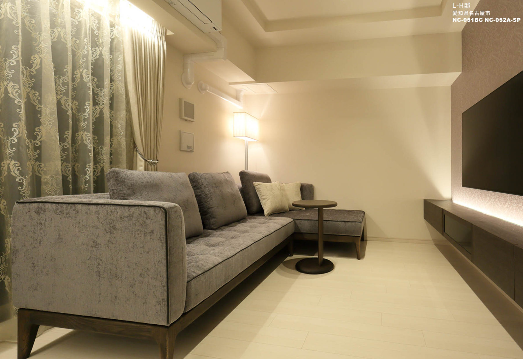 当社製品の採用理由:モダンエレガントな雰囲気をお好みだったのでHeritageシリーズをご提案したところ、一目で気に入っていただきました。ソファのパイピングや木部のカラーが全体を引き締めてくれています。