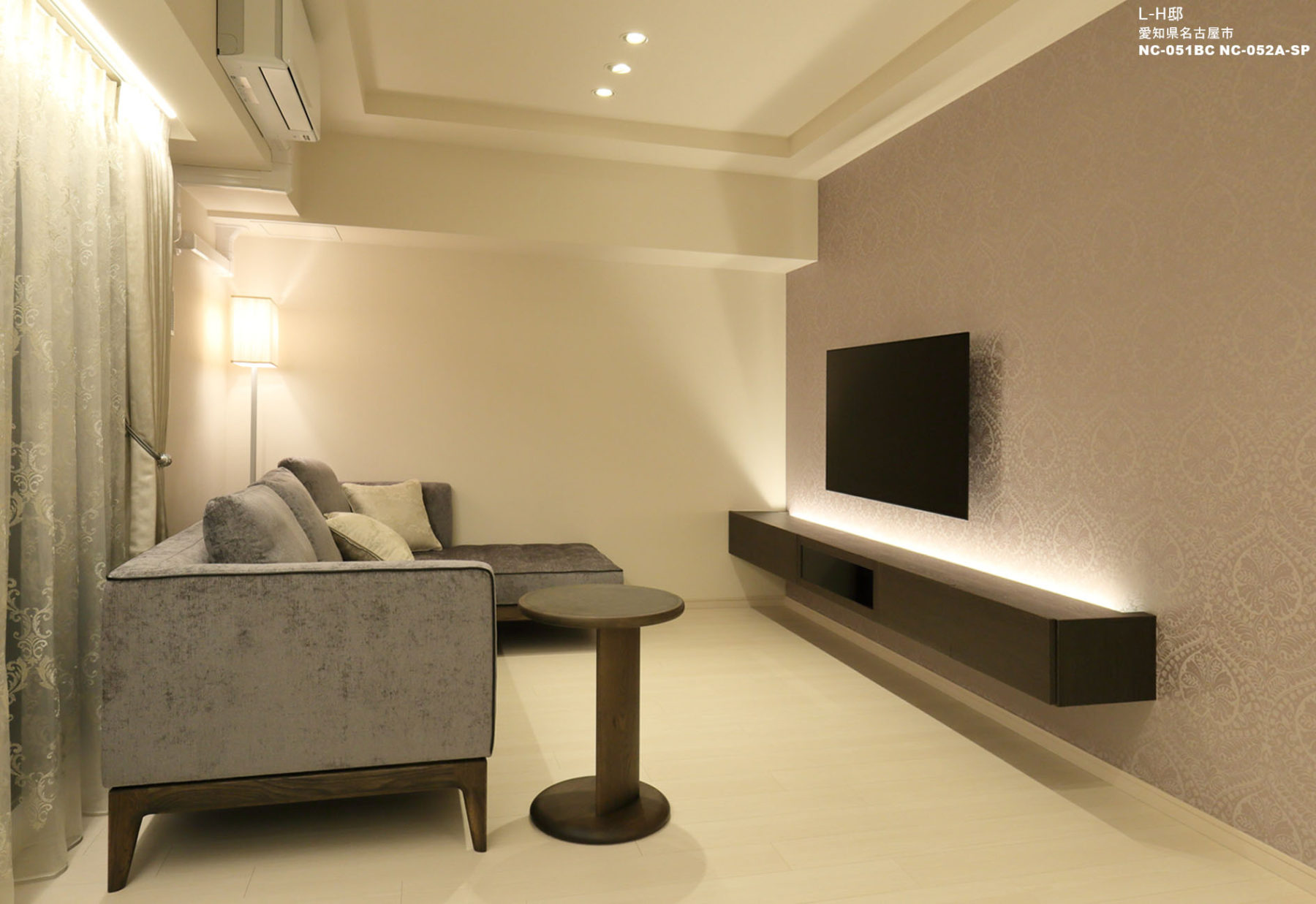 新築マンションへのお引越しに伴い、既存の内装を一部リノベーションさせていただきました。照明計画、家具、カーテンをトータルコーディネートし、単一的なマンションの内装がエレガントで華やかな雰囲気に仕上がりました。
