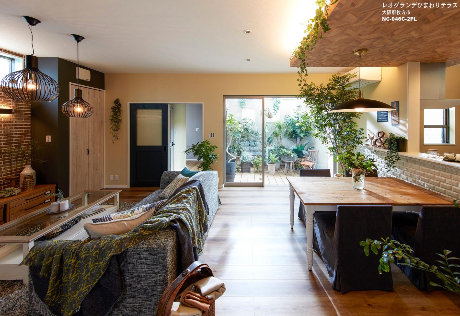 「BT(ビーティ)」とは、ボタニカルタイムの略。「ボタニカルな時間を過ごす7ルールの家」がコンセプトの戸建モデルハウスです。インテリアは温かみのあるイエローをベースに、ダークグレーのアクセント、グリーンと木質をMIXし、穏やかなフェミニンさもプラスしたヴィンテージスタイルにまとめました。