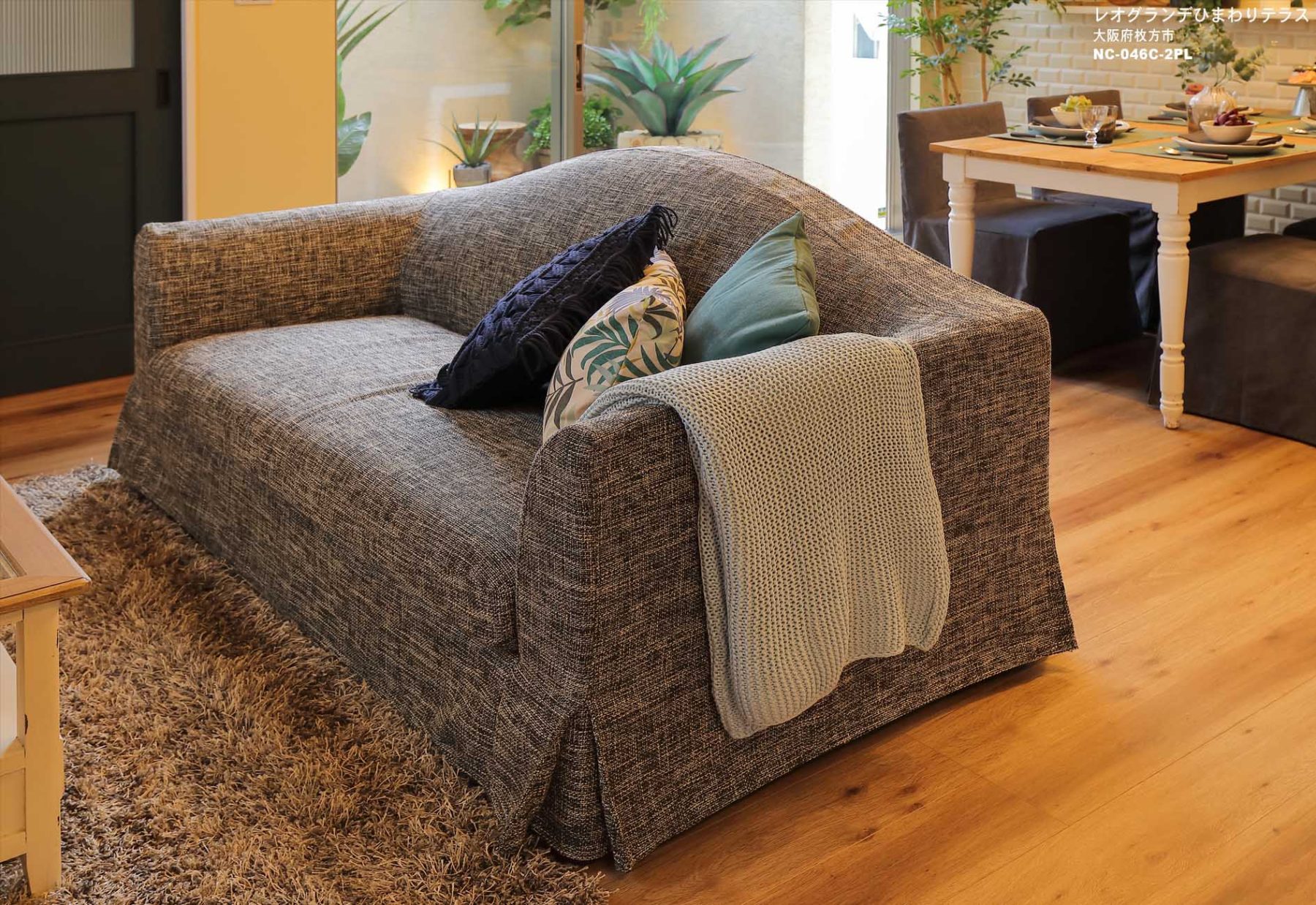 納入後の感想:張地はグレーでも印象はフェミニン。今どきの新しいリラックスインテリア、他の内装材ともバランス良くコーディネートすることが出来ました。公式ホームページでは、モデルの方が心地良さそうに座っている写真も掲載されています。