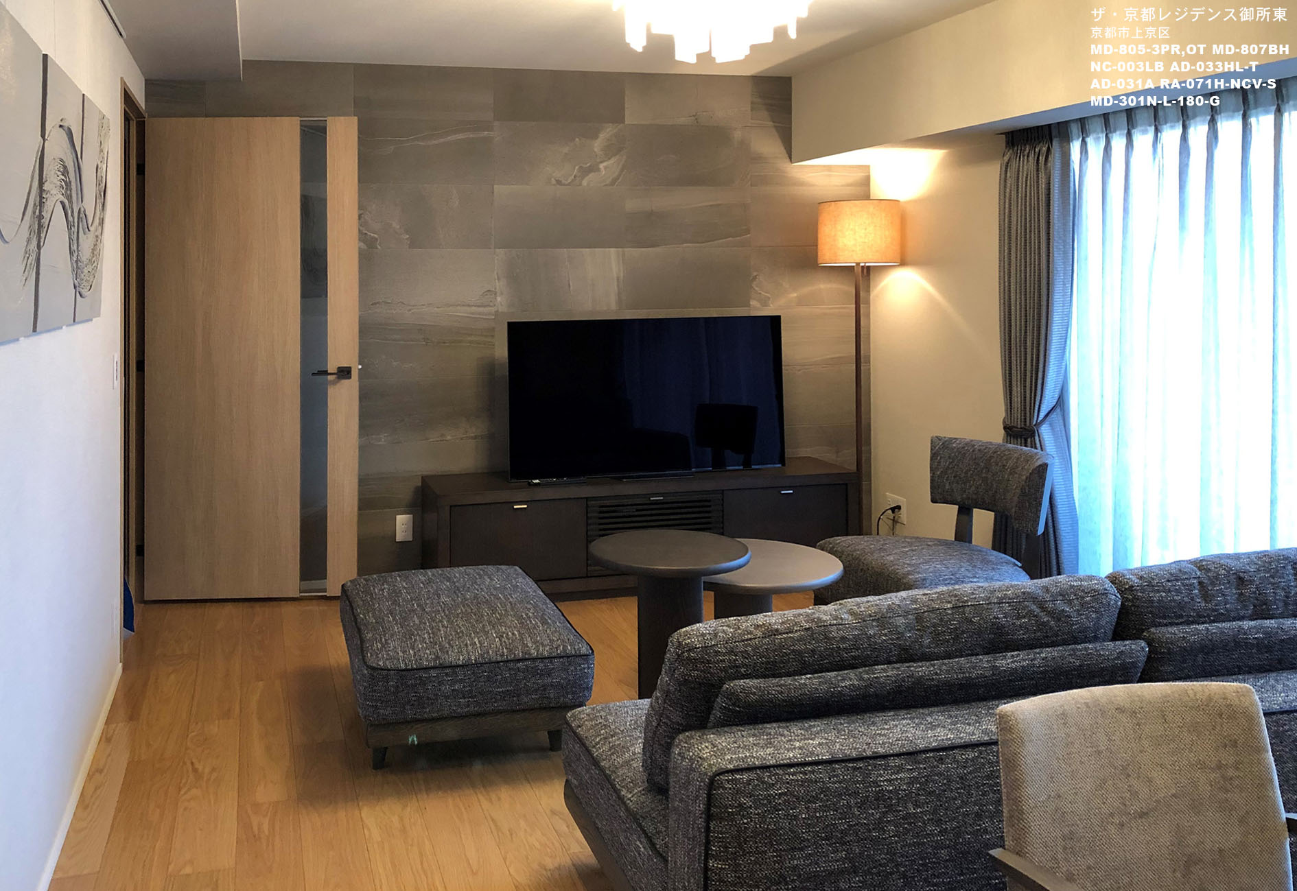 納入後の感想:私はいつもお客様が最後の仕上げをして頂くよう、完成し過ぎないコーディネートを心掛けています。お客様ご自身が花やファブリックなどお気に入りのインテリアアイテムを加える事で、インテリアの楽しみを味わって頂きたいと考えているからです。モノトーンの空間は、様々な色が映えるので、色んな色を加える事でインテリアのアレンジを楽しんで頂ければと思います。