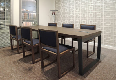 ”理想の住空間を提案するクリエイティブ・ショールーム”として、セキスイハイム中部初のインテリアショールームをオープンしました。その施設内に、ご来館いただいたお客様に、ゆったりとくつろいでいただけるよう、”上質なホテルラウンジ”をイメージして作ったスペースがあり、そこにエーディコア・ディバイズのソファを設置しました。また、ミーティングルームにも、モダンで上質さが感じられるよう、落ち着いたデザインのテーブルと椅子を設置しました。