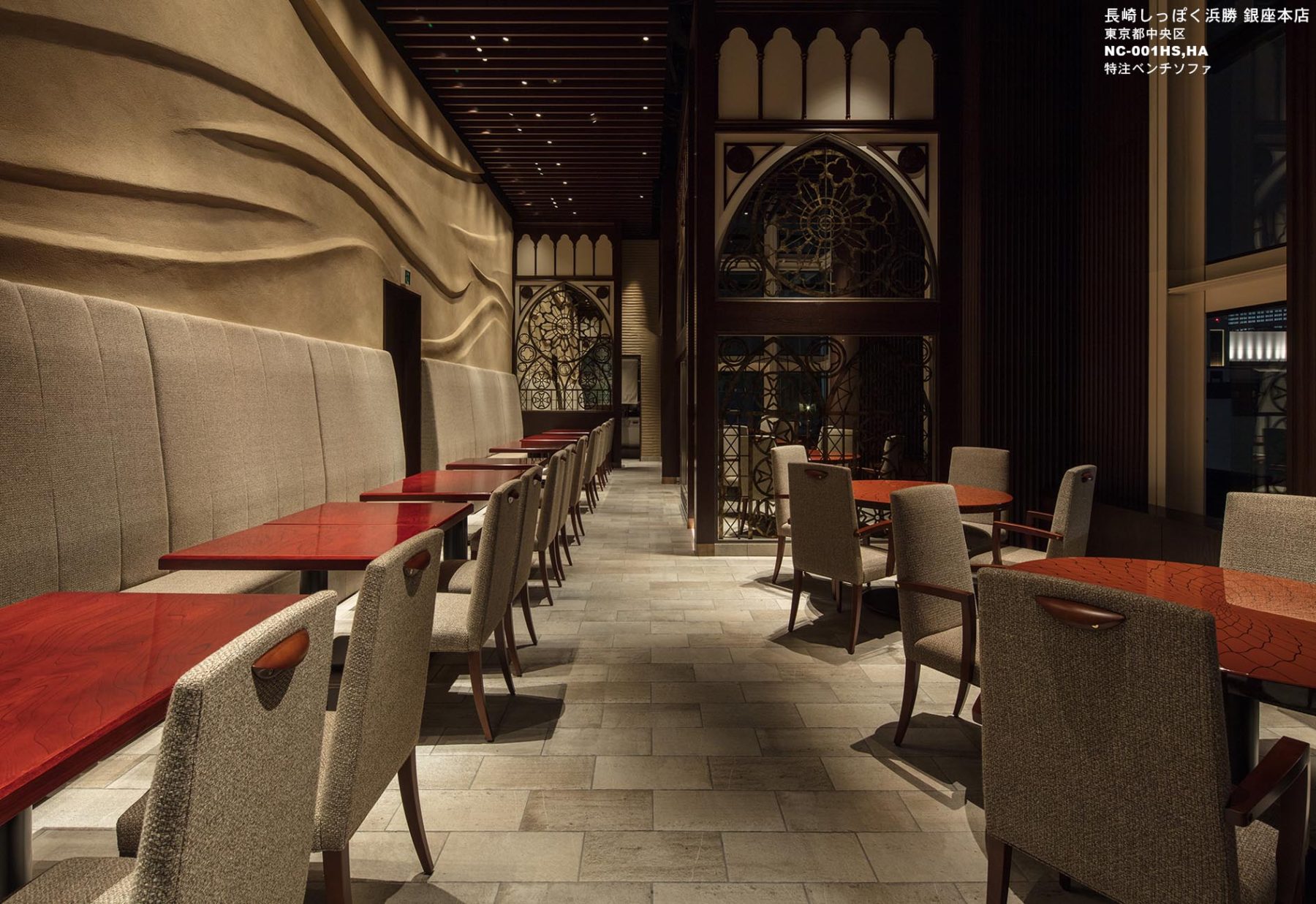 6mの天高のダイニングエリアは、大浦天主堂(幕末1865年建立のヨーロッパ古典建築様式の木造建築)からインスパイアされた特別仕立ての空間になっています。