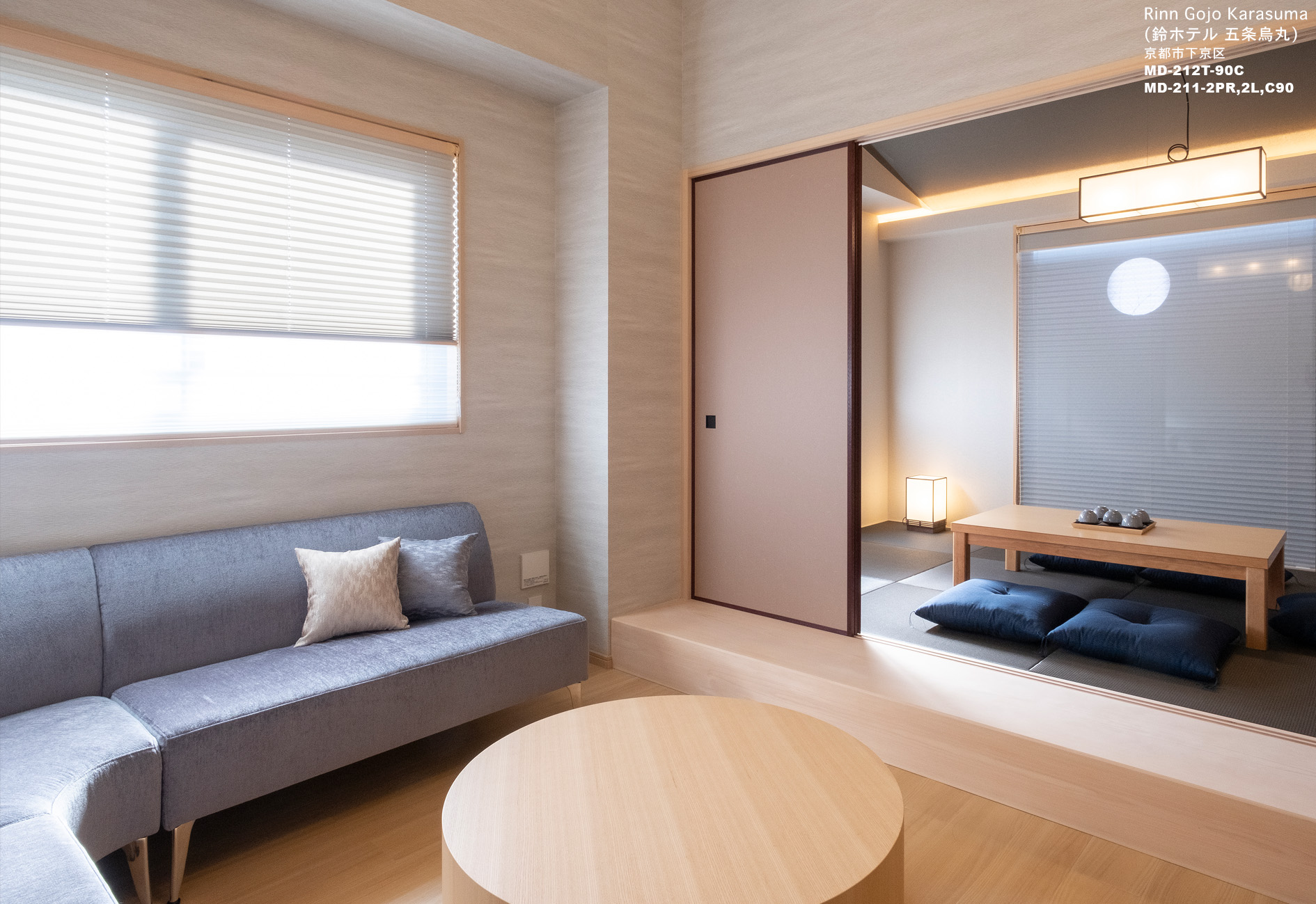 Rinn Gojo Karasumaは地下鉄烏丸線「五条駅」から徒歩2分の立地にあり、観光・ビジネスの拠点として最適です。部屋はキッチンのあるファミリータイプ、畳の部屋など全7タイプ。階上のお部屋からは京都タワーを望むことができます。