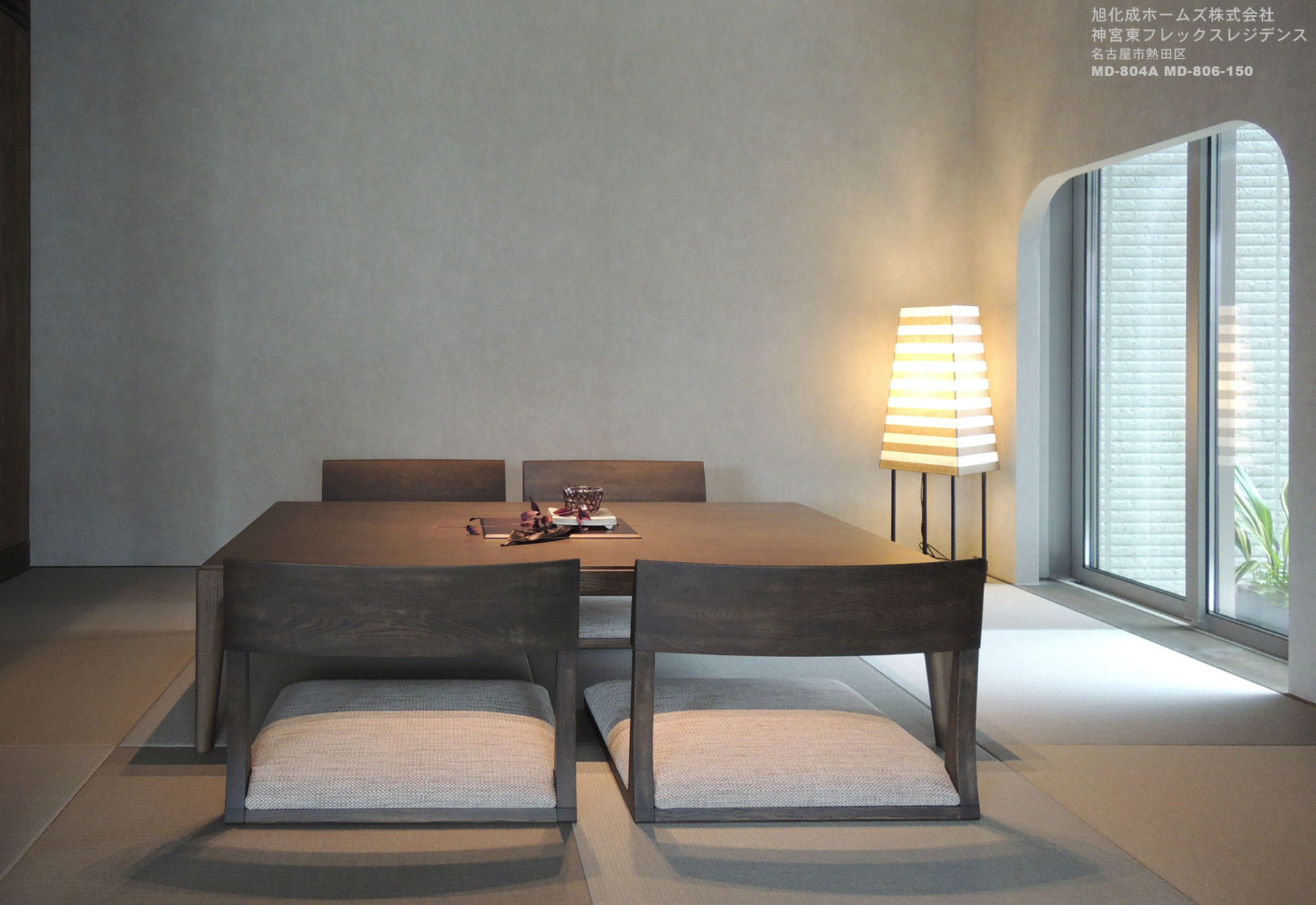 当社製品の採用理由:草木染の無垢床や畳コーナーの造作材に、木の色味がきれいに合っている事。また、クラシカルでありながらモダンなデザインが、インテリアにマッチするため。