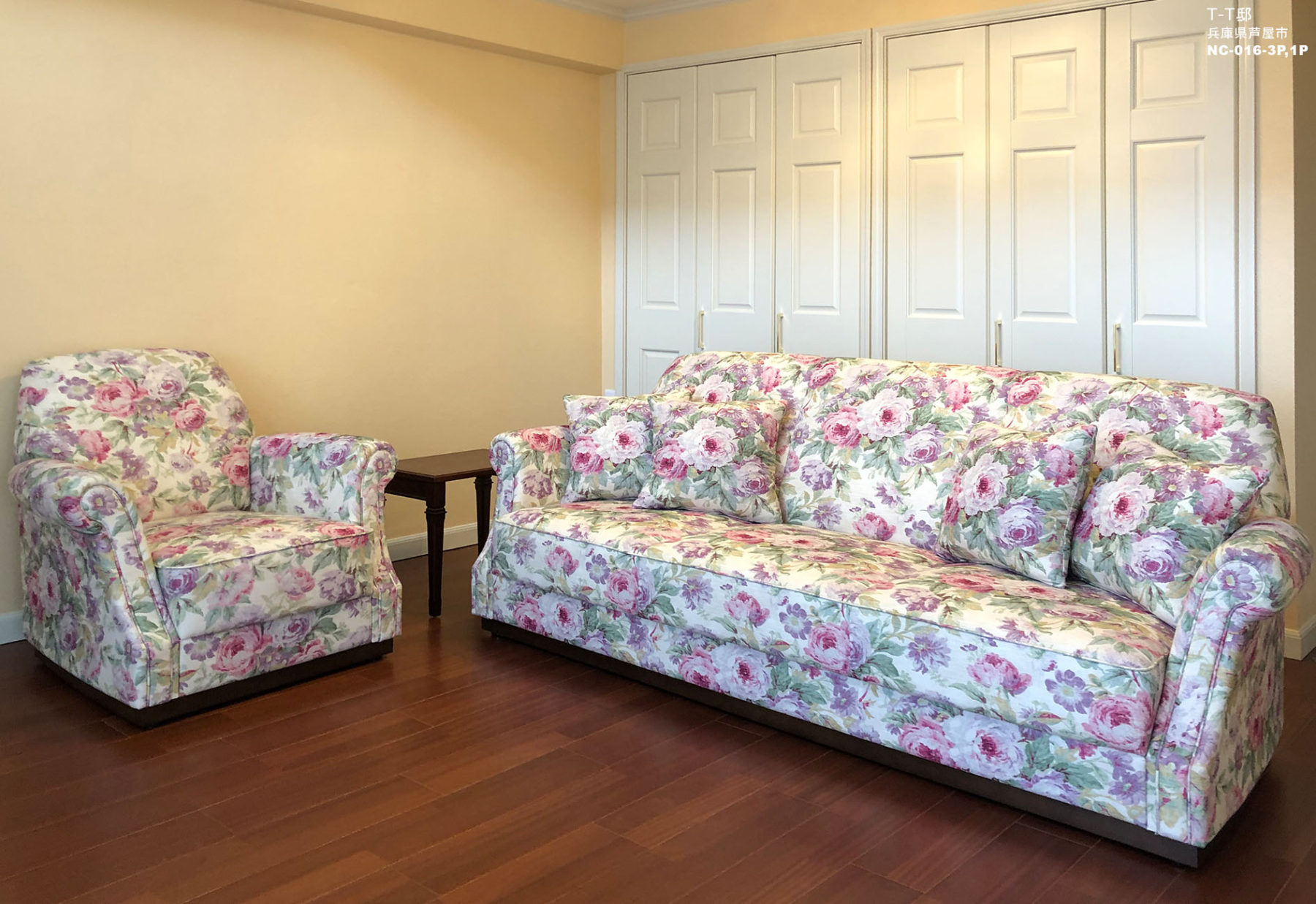 ご夫婦ともに英国風インテリアがお好きで、カーテンも伝統的な花柄を選ばれましたが、ソファはなかなか形、柄ともに気に入るるものが見つからず相談しながら決めました。