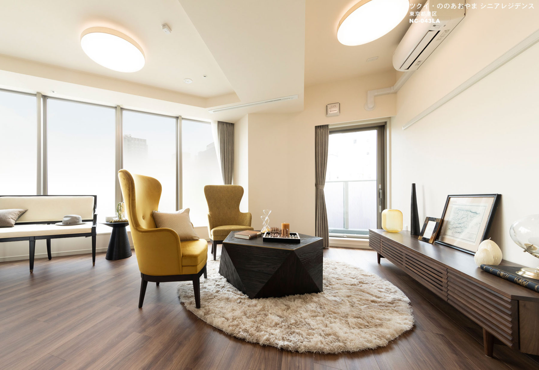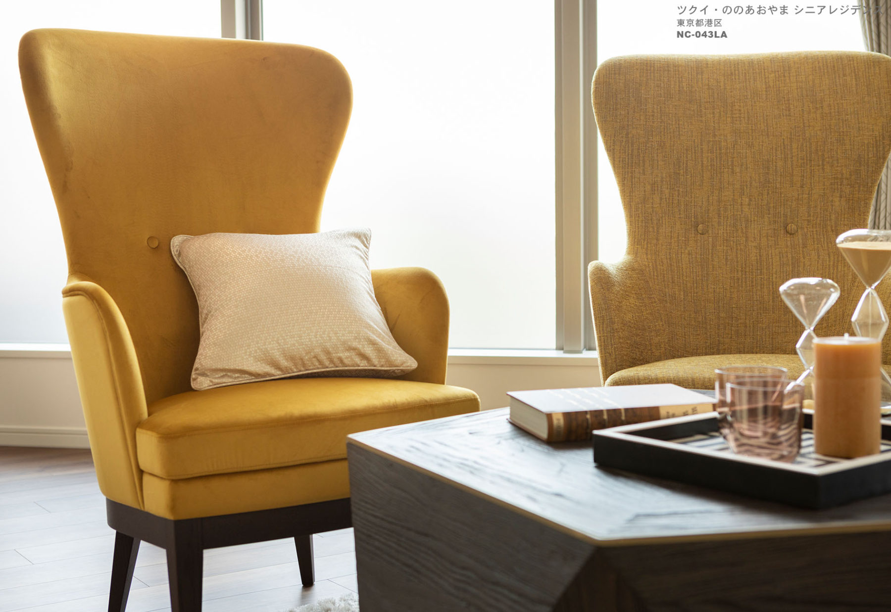 当社製品の採用理由:お客様がご自身のシニアライフをアクティブに、そして明るく過ごしていただけるように選びました。ハイバックチェアの特性を活かし、ご家族やご友人との優雅でリラックスした空間に最適と思い選定しました。