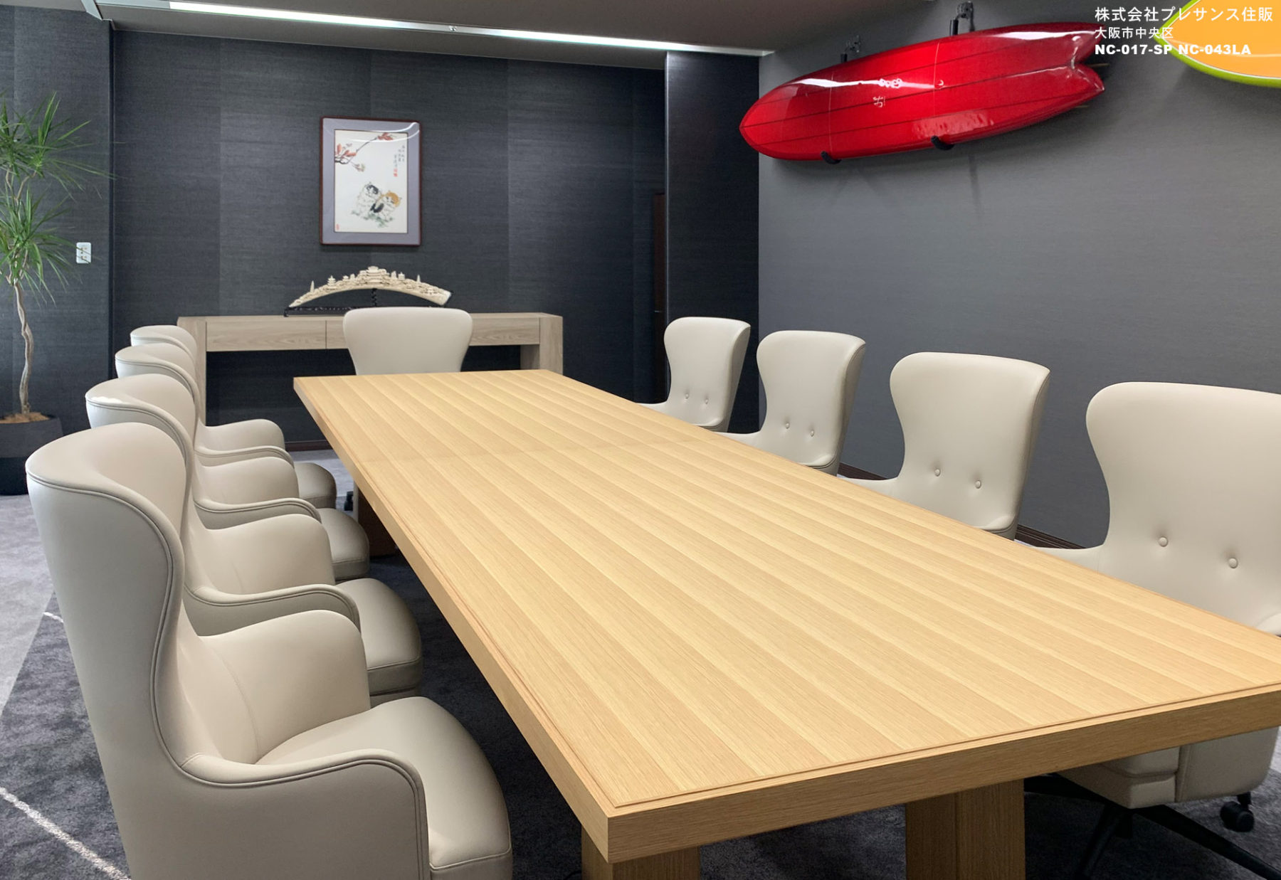 当社製品の採用理由:空間に映える素材感を活かした大テーブルと、ゆったりと快適な座り心地と機能性の良さ、デザイン性があったため採用しました。